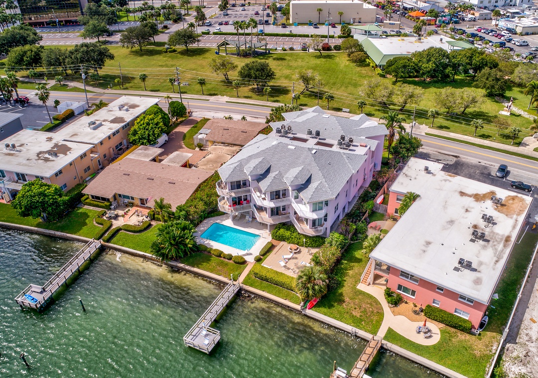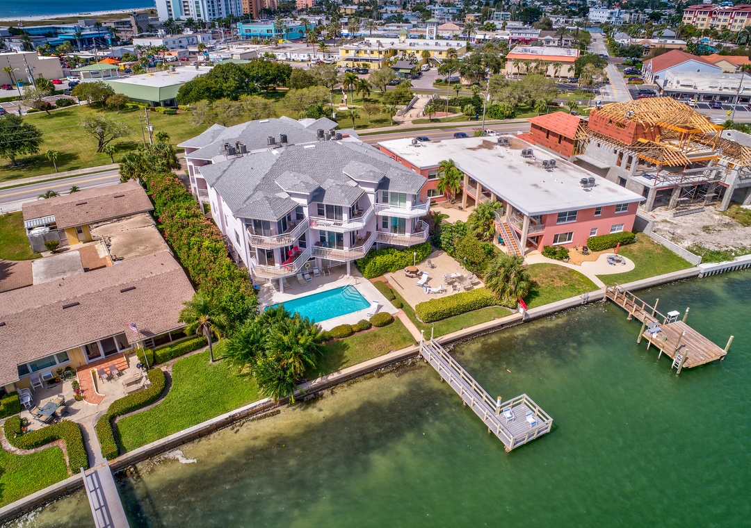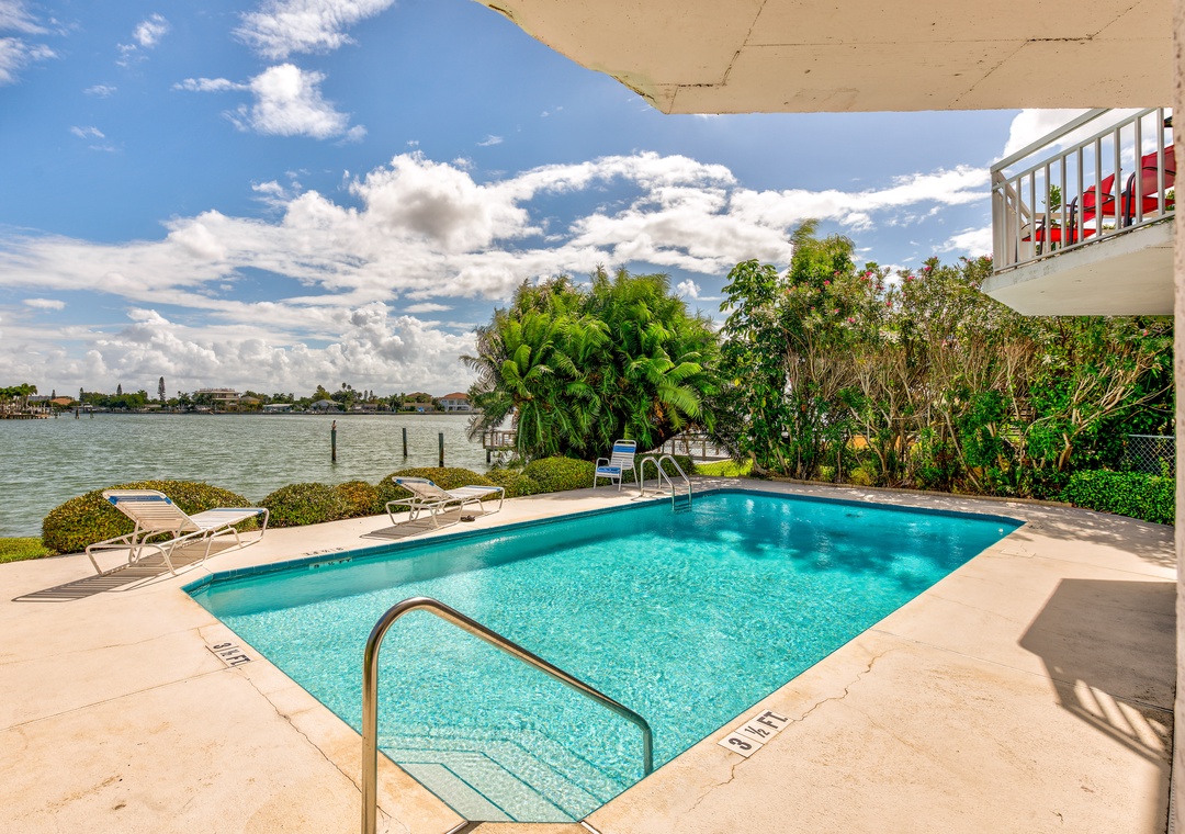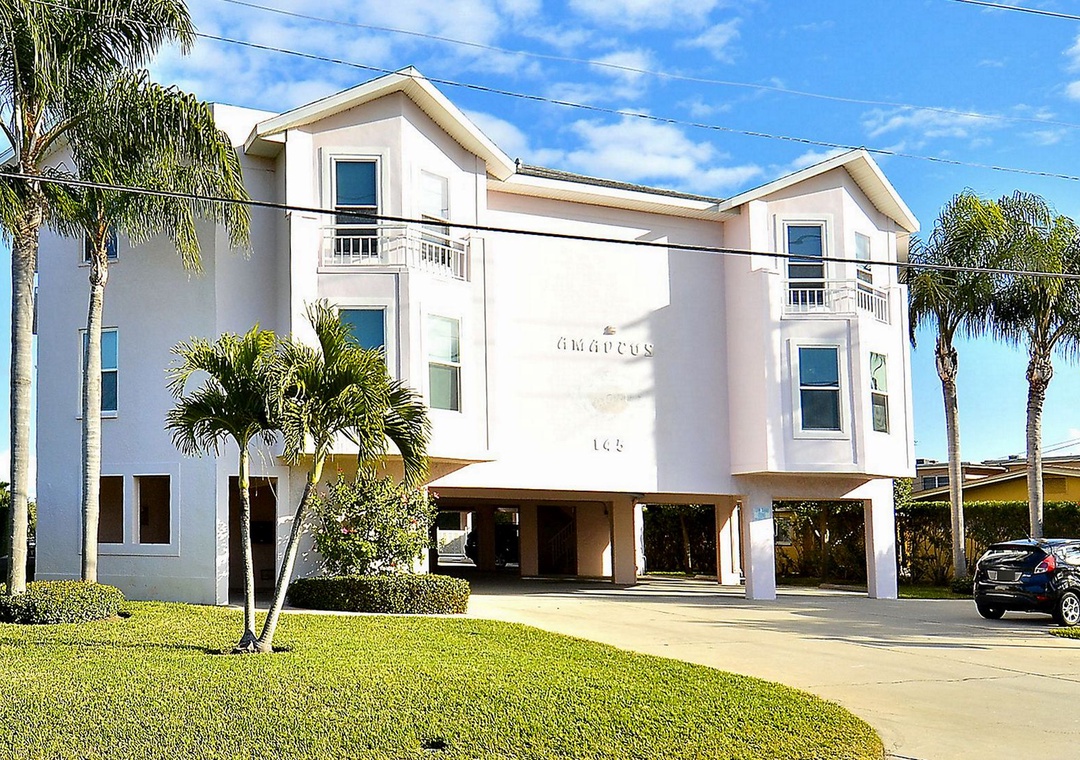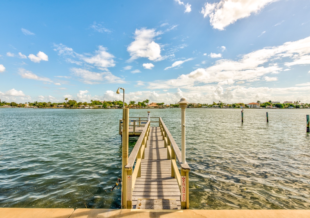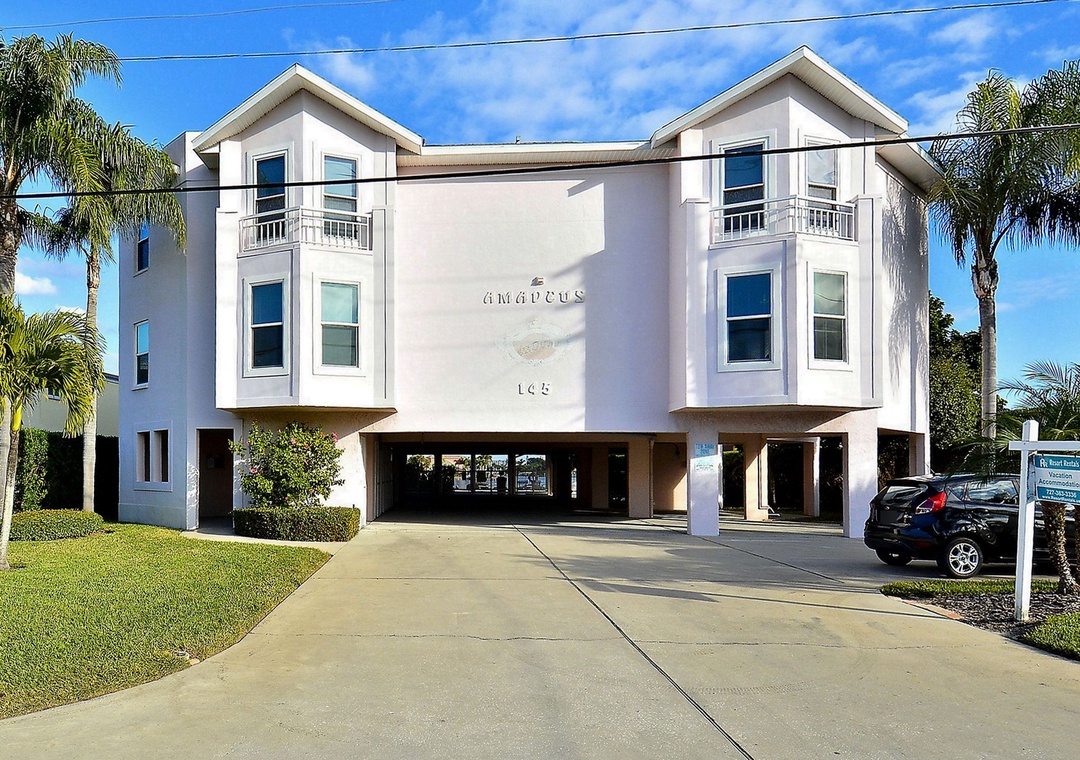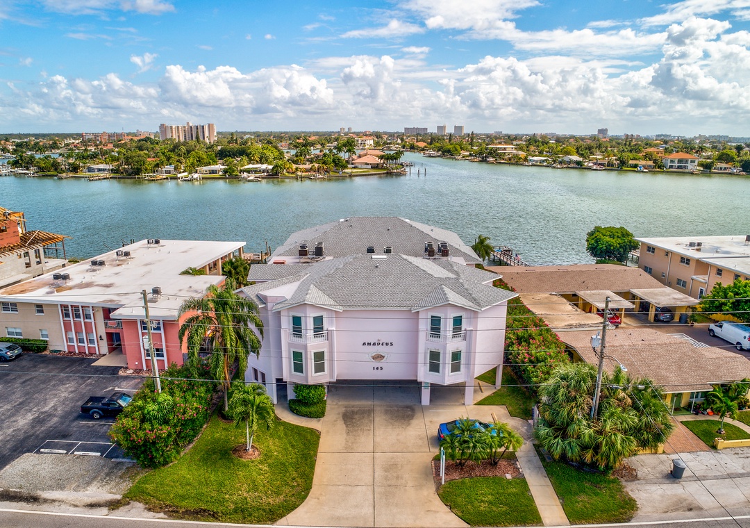 The Amadeus is a smaller water front building with only 10 condos, centrally located just a block from the easy beach access in Treasure Island. It features a beautiful large sundeck water side and sparkling heated pool. There's a great dock to fish or just sit, relax and watch dolphins and manatees go by.