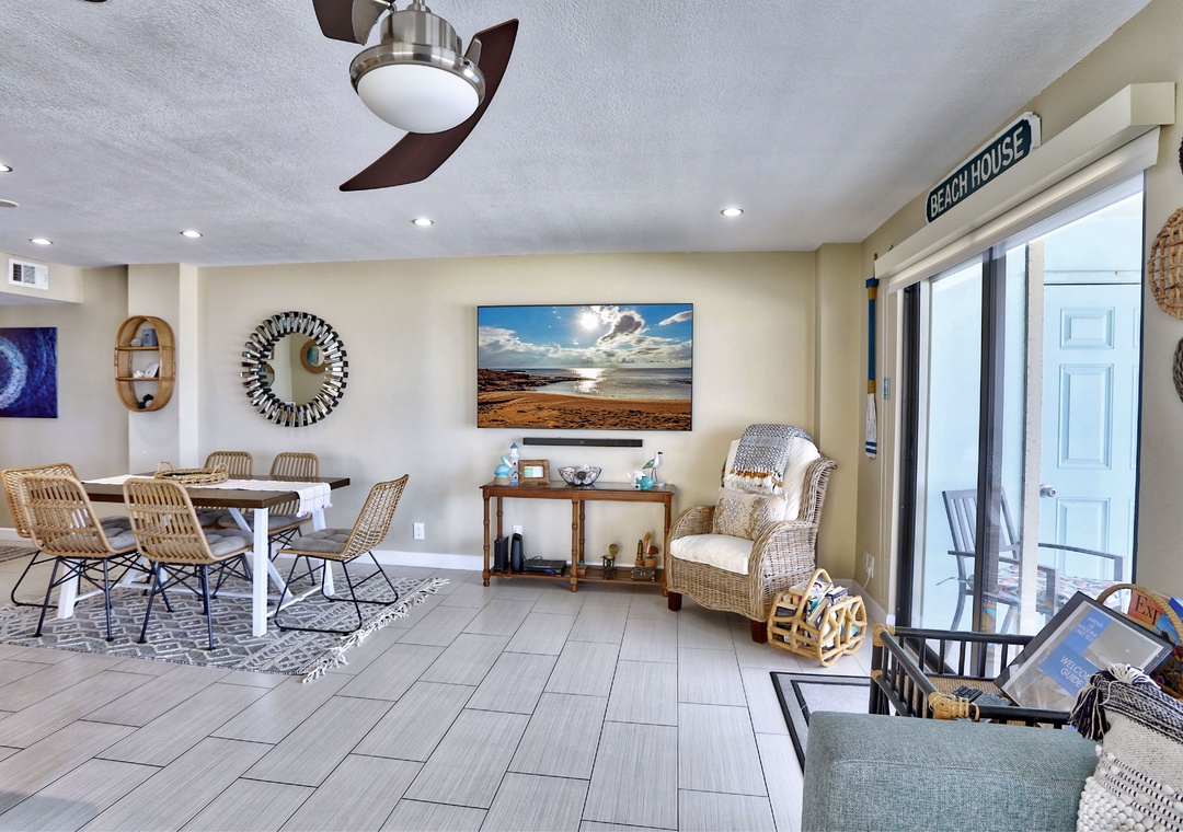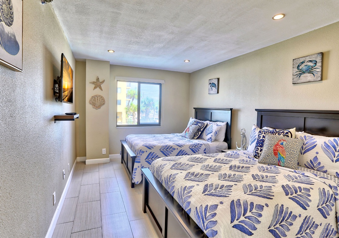 This condo is spacious and accommodating; it comfortably sleeps up to 8 guests with a master bedroom featuring a king bed, Smart TV, and en suite bathroom. Two additional bedrooms provide cozy sleeping arrangements, and each having its own TV.