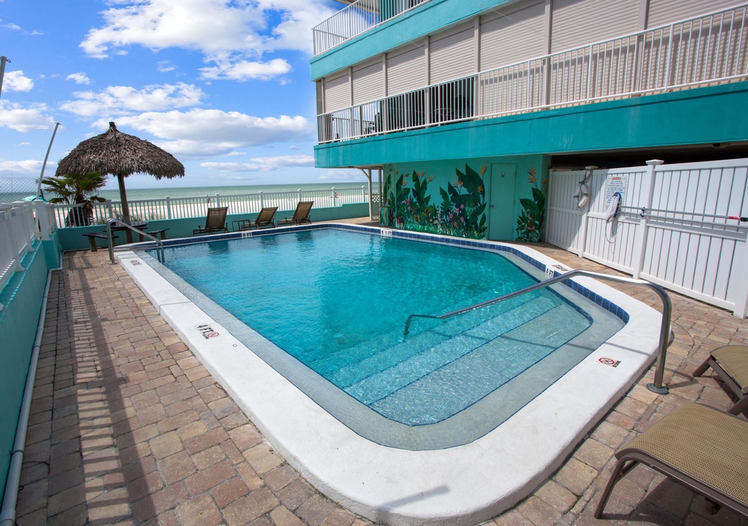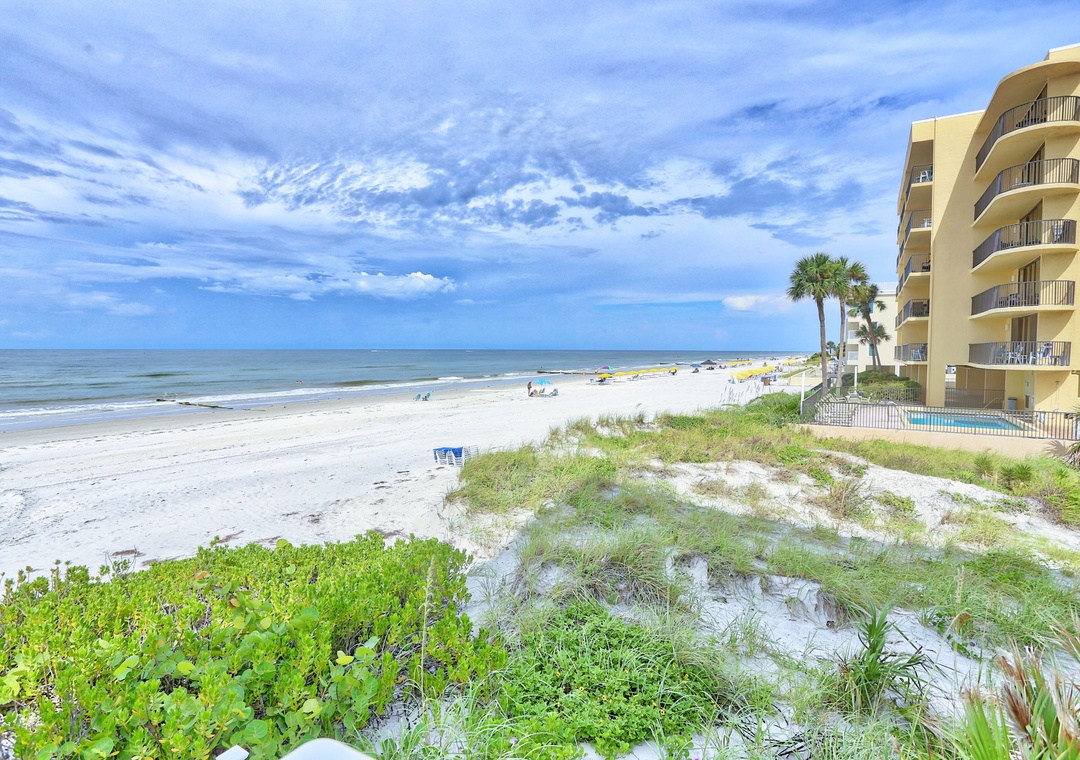 Walk to the sandy shores of Madeira Beach via the private beach access path on grounds and spend your days soaking up the sun or strolling along the shore. Additional comforts you will find are a Washer/dryer in-unit, onsite parking, and access to a seasonally heated onsite pool.