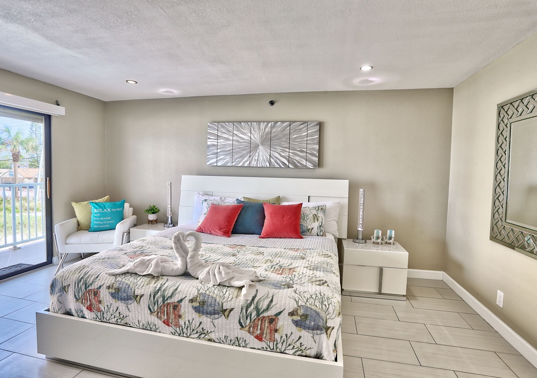 This was the perfect condo to rent! Perfect location, perfect beach, perfect sunsets! The condo was immaculate. The kitchen was well stocked with cooking supplies and utensils. It is decorated in a very contemporary style that is very neat and tidy. We were there in January and it was nice to have extra blankets and throws for a few chilly mornings. It is within walking distance to many, many restaurants. I highly recommend this unit to rent. And you will never meet nicer owners!- Posted: 2/8/2018