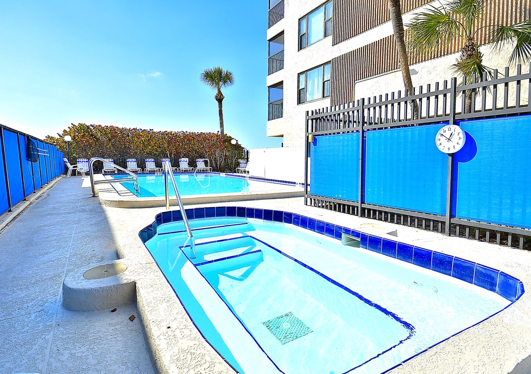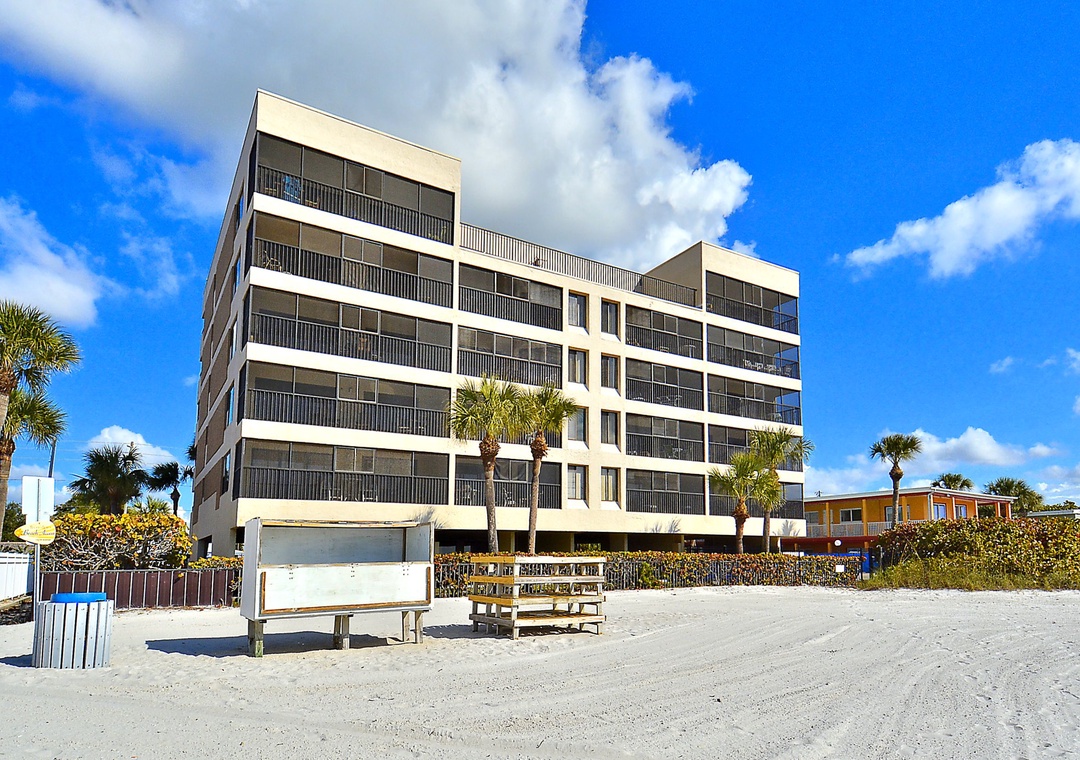 Direct Beachfront on Madeira Beach and close to everything is the Arie Dam. This condo complex has direct beach access, a heated pool and hot tub, private screened in balconies with direct Gulf views from each… its perfect!!