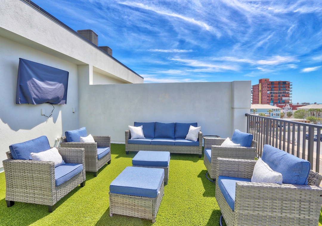 4th Level - Living Room Set up with Queen Pullout Sofa. Full Bathroom. Roof Top Deck.