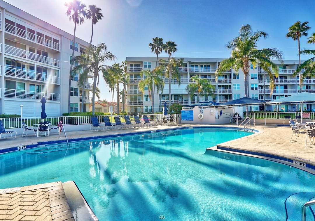 If you are looking for a coastal getaway where you can make some wonderful memories, this is the place for you. Take in the coastal atmosphere in this cozy 2 bedroom, 2-bathroom condo. The kitchen is fully stocked for all your cooking needs, including indoor BBQ Table Top Grill. The open floor plan to dining room and living room assist in making sure you never miss a moment of time with friends and loved ones. Spend a lazy day swimming in the large outdoor pool overlooking the Boca Ciega Bay, or if you prefer to hear the waves crashing on the shore, the Gulf of Mexico is a just short drive from your condo.