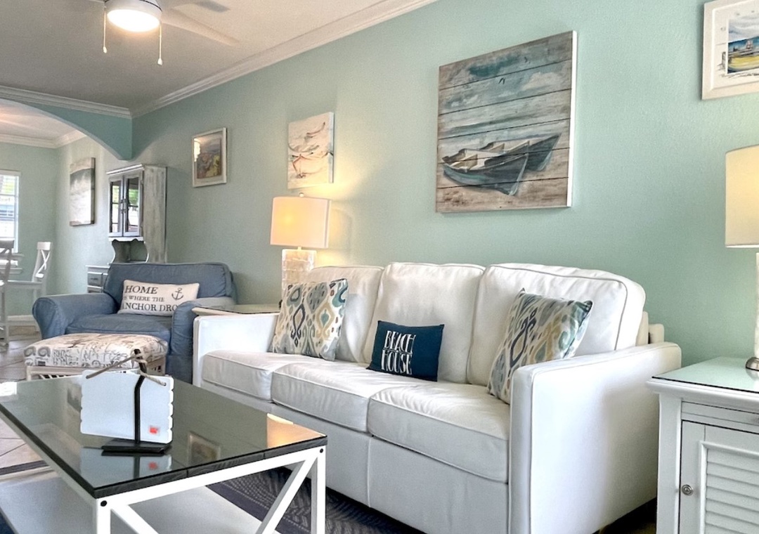 This property is IMMACULATE. It is nestled in a family-friendly, well-maintained condominium complex. The complex and the area felt very safe for a mom traveling with two young adult daughters. Holly and Garry provided all the special touches we needed to feel at home and also feel pampered — luxurious bath towels, fabulous linens, beach toys, even high quality sleeper sofas!! The fresh paint and beach decor are darling, too. We will definitely be back someday!- Reviewed On: 8/8/2021