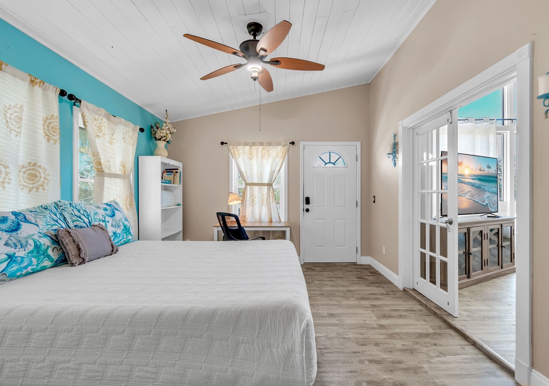 You will also want to note that the queen bedroom is off the living room and only has glass-pane French doors separating the 2 spaces, so there is no privacy for this bedroom. It wasn't a big deal for us as grandma used this room, but had we been traveling with another couple, this could have been a little awkward!