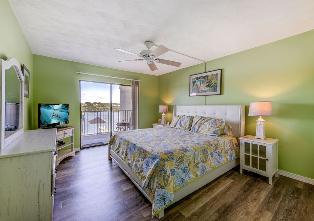 • Water Front Main Bedroom with Bay Front Balcony Access.