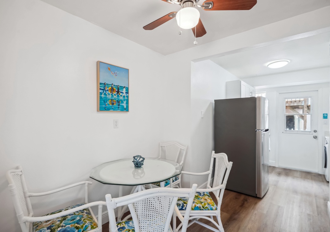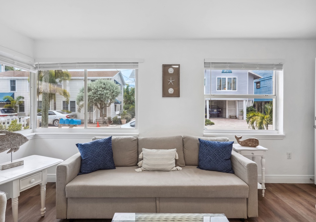 Beach Livin Unit #2 offers a charming one-bedroom, one-bathroom layout perfect for your beach getaway. A fully stocked kitchen allows you to prepare and enjoy your favorite meals just like at home. Whether it's a quick breakfast or a leisurely dinner, you have everything you need at your fingertips with seating for two in the breakfast nook. After a day of sun and sand, unwind in the spacious living room. With comfortable seating for 3 and a welcoming ambiance, it's the ideal spot to relax, watch TV, or simply enjoy quality time with loved ones. The living room also offers a small twin sized sleeper sofa. Venture to the bedroom where you will find a queen bed and the bathroom. Sleeping up to 3 guests this spot is perfect for your romantic getaway or for your small family vacation. Come make your lasting beach memories at Beach Livin #2.