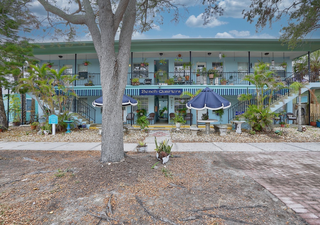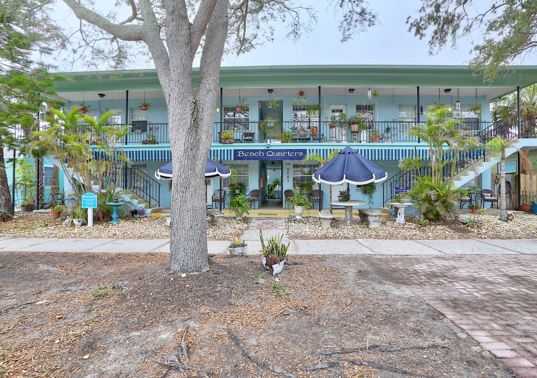 Beach Quarters offers 8 apartments in an unbeatable location. Units 1-4 are ground level, 5-8 are up a flight of stairs. Sit on the porch and soak in the ambiance of Gulfport. Within just a few steps, you'll find charming coffee shops, pastry boutiques, a variety of restaurants, and the pristine Gulfport Beach. Experience the heart of the city at your doorstep.