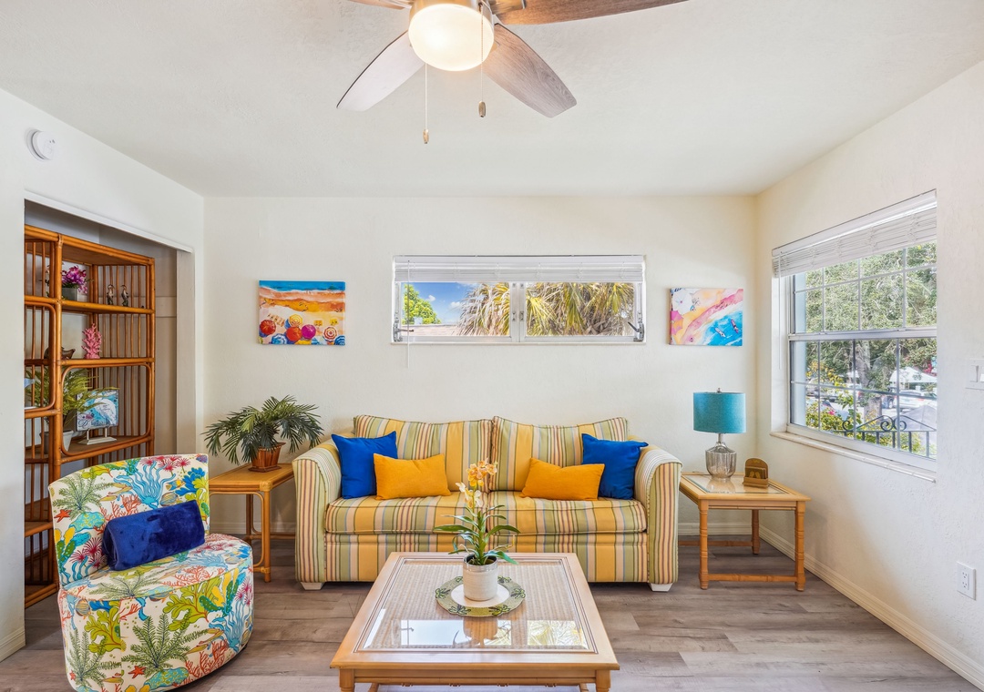 The Beach Quarters building consists of 8 units total. 6 units are available to rent. Units 1-4 are ground level, 5-8 are up a flight of stairs. Sit on the porch and soak in the ambiance of Gulfport. Within just a few steps, you'll find charming coffee shops, pastry boutiques, a variety of restaurants, and the pristine Gulfport Beach. Experience the heart of the city at your doorstep. Each unit comes with a kitchen, bedroom, living room and full bathroom. All units have their private entrance without connecting doors. The retreat features a breakfast bar and nook, perfect for enjoying morning coffee or a leisurely meal. Flat-screen televisions in both the living room and bedroom provide entertainment options during your downtime. Experience a touch of nostalgia with the retro original tiled bathroom, complete with a tub/shower. It's a charming nod to the past. This Gulfport retreat is your ticket to a relaxed and enjoyable stay. Whether you're sipping coffee on the porch, exploring the local scene, or lounging on the nearby beach, you're sure to create wonderful memories in this adorable getaway.