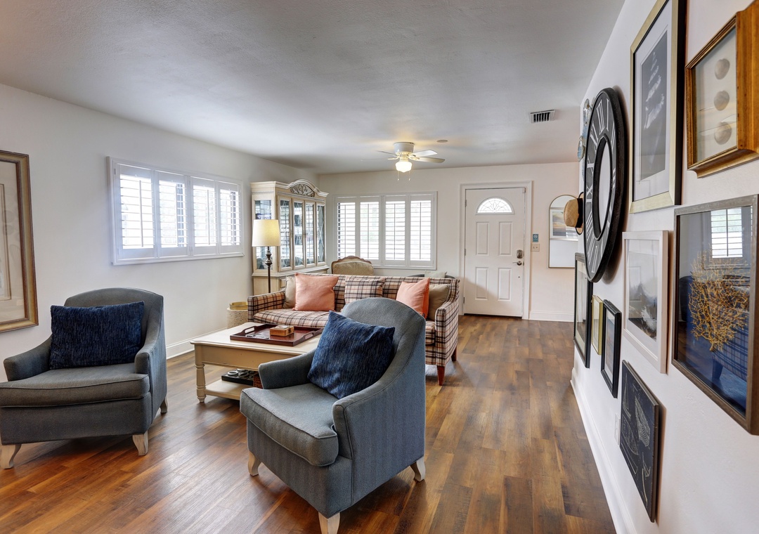 Welcome to Blue Beach Cottage! This charming single-story 3BR/2BA home is the perfect retreat for families and friends seeking sun, sand, and relaxation. With a prime location just steps from the beach, your getaway awaits. Blue Beach Cottage offers unparalleled access to the beach, with a convenient path just across the street. Spend your days basking in the sun, building sandcastles, or taking long walks along the shoreline. This cozy home features 3 bedrooms, with comfortable accommodations for up to 6 guests. The master bedroom offers a comfy queen bed and an updated ensuite bathroom. The second bedroom has 2 twin beds while the third bedroom offers a trundle bed. The living area is ideal for relaxation, with ample seating, a flat-screen TV, and plenty of natural light. Prepare delicious meals in the fully equipped kitchen featuring modern appliances. The fenced-in backyard provides a private oasis for you to enjoy. Whether you are lounging on the deck, firing up the grill for a BBQ, or letting the kids play in the yard, this outdoor space is perfect for relaxation and recreation. Blue Beach Cottage is the hidden gem you've been searching for - book today@