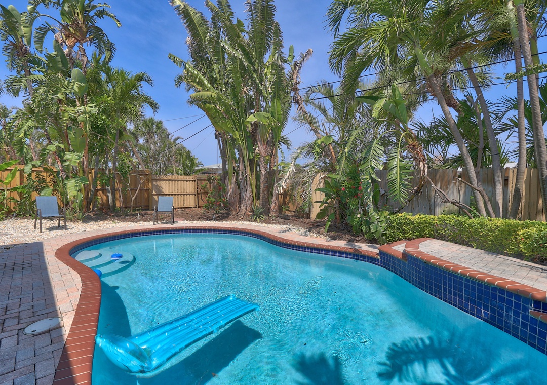 Welcome to Coquina Hideaway!! This charming 2-bedroom, 1-bathroom single-family home is perfect for your next vacation. Enjoy the entire property, including a refreshing pool and a spacious screened-in porch ideal for relaxing and gathering with your family.