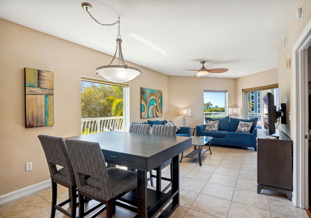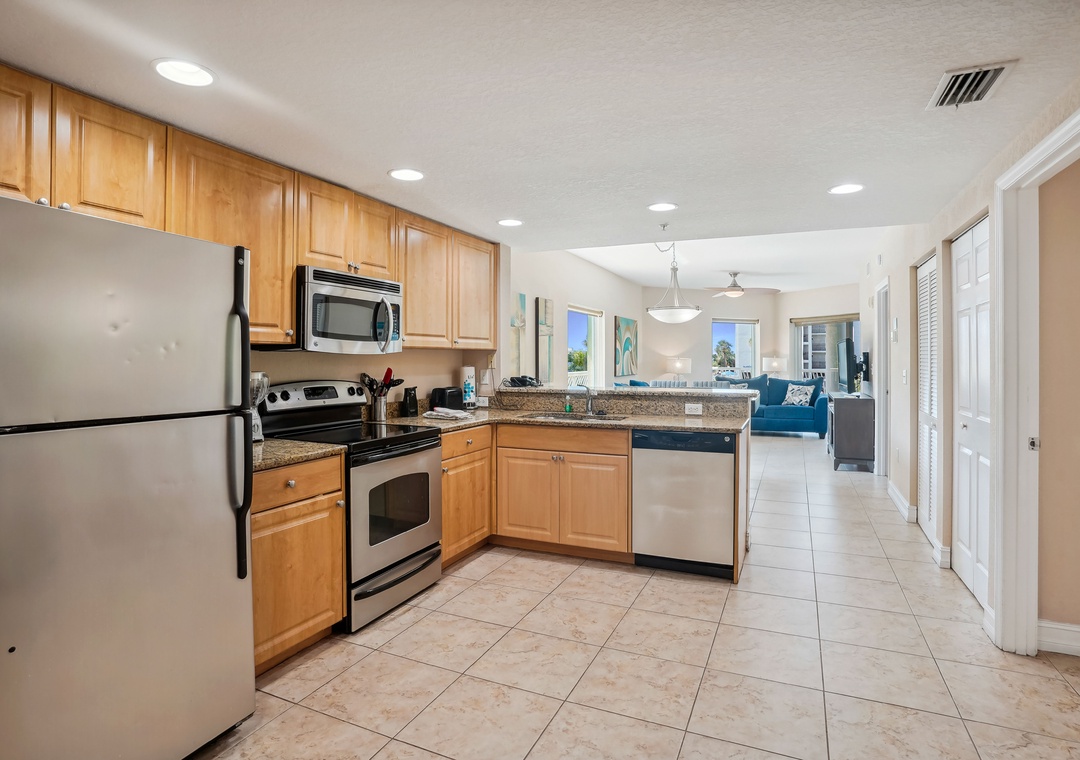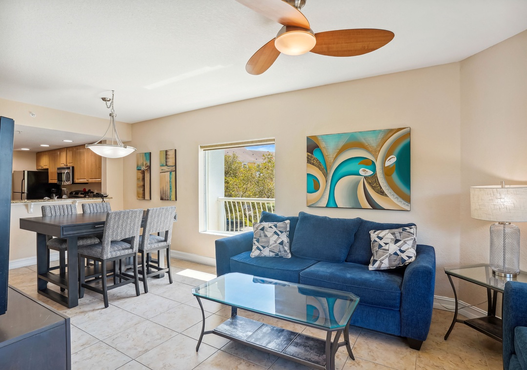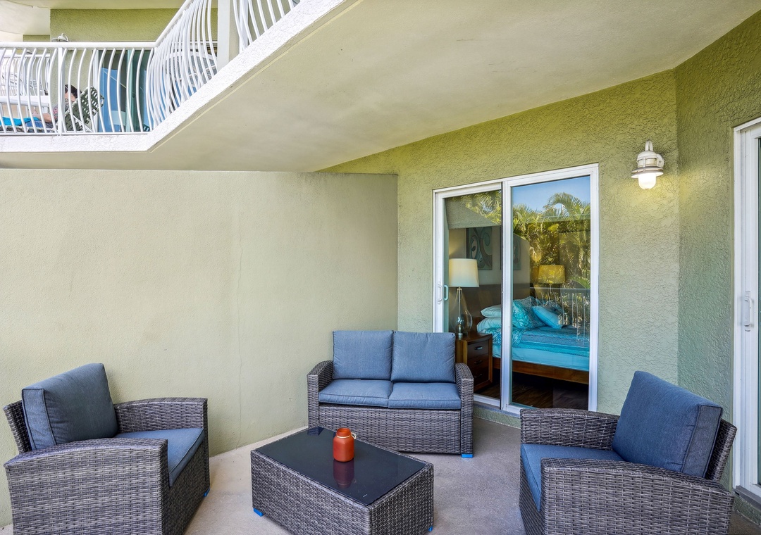 Relax and enjoy the island of Treasure Island from your private balcony! The open concept floor plan is welcoming, inviting you to make yourself comfortable. This family friendly condo has a fully equipped kitchen. Outfitted with beautiful new furniture, the living room welcomes you to kick back and unwind.