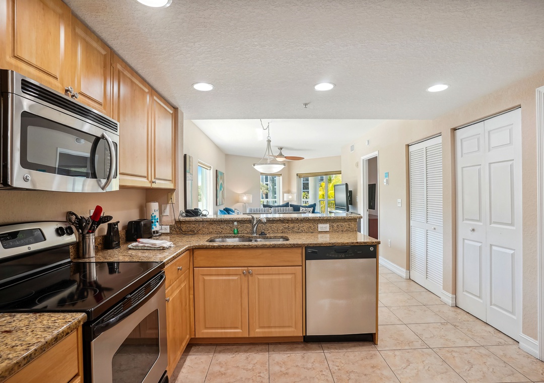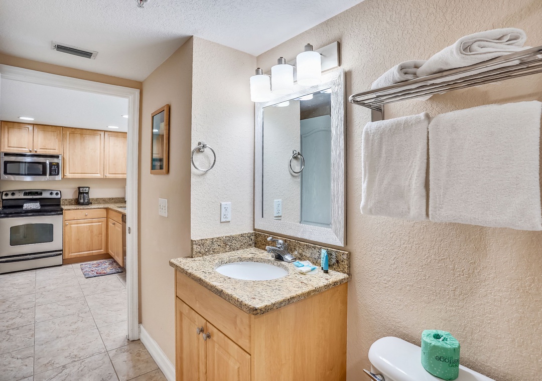 Overall our stay was great!. The condo was very spacious and clean - pictures shown are very accurate. Loved having a washer/dryer right in the unit. We enjoyed using the balcony, it is even larger than it looks in the pictures, and the different kinds of seating was a bonus. Accessing the beach was very easy as there were two public access points just across the street. There is a nice boardwalk along the beach so it is an easy walk (10-15 min) down to some beach front restaurants as well. (ie; Sloppy Joes). I really only have two complaints. 1) The kitchen is very sparse in the way of utensils, dishes & pans. Adding things like a spatula, mixing and serving bowls, sharp knife set, spatula, or even basic spices, etc., would be helpful. 2) The blinds are very thin. The front master bedroom faces the road where the large Crystal Palms sign is. That sign shines like a beacon through the blinds all night long. We ended up hanging a towel over the blinds to block the light coming in.- Reviewed On: 3/25/2023
