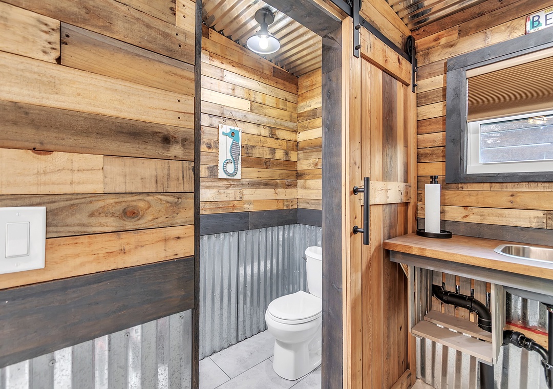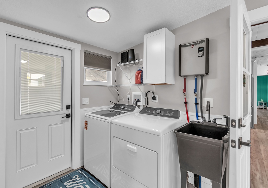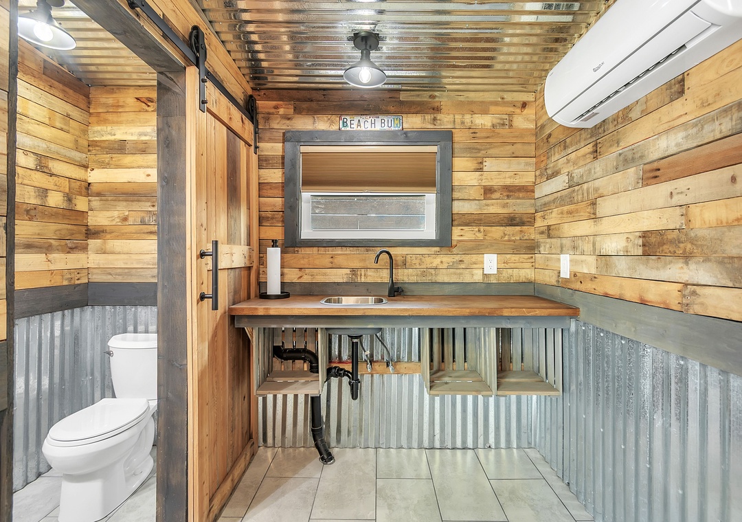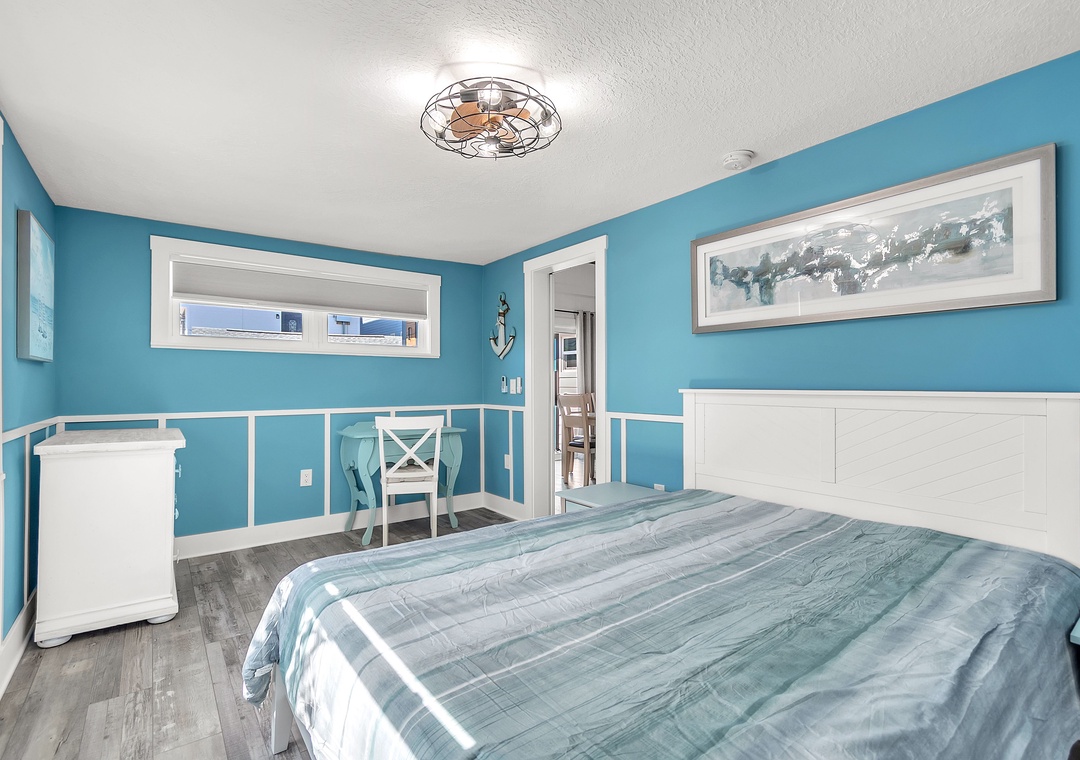 Adding to the home’s appeal is a spacious bonus room off the back deck, complete with a large screen Smart TV, table, futon couch that converts to sleep two, and a convenient half bath—an excellent second living area or private hangout to watch the game. Outdoor living is just as inviting, with a covered patio featuring a large sectional couch, gas grill, and outdoor shower for easy rinsing after beach time. A full laundry room with washer, dryer, and rinse sink adds extra convenience.