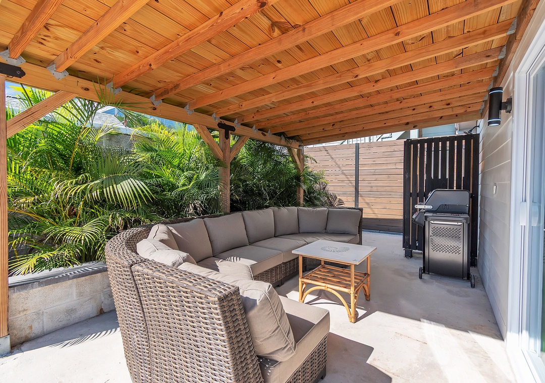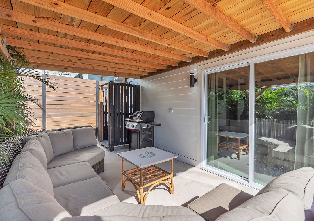* Covered Outdoor Area with Large Sectional, Gas Grill and Outdoor Shower