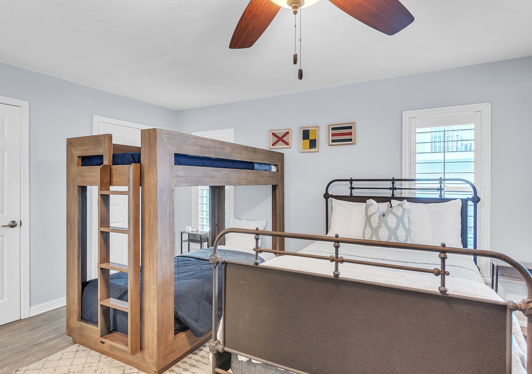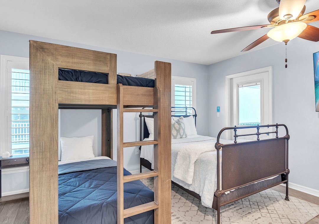 Guest Bedroom - Queen Bed. Bunk Bed - Twin over Twin. Private Balcony. Attached Bathroom.