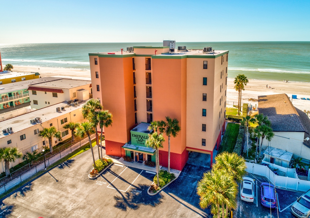 The Emerald Isle is a direct beachfront building on North Redington Beach. This building has 2 or 3 bedroom option condos, all which will have direct views of the Gulf of Mexico from their own private balcony. The area is great too! Redington Shores is ideally located and close to everything. You will find John’s Pass Village approximately 2.5 miles to the South which is filled with shopping, restaurants, water activities and entertainment for all. Redington Beach is a quaint beach town that is just a short drive outside of St Petersburg, a city loaded with museums, art galleries, restaurants and shopping. Experience the surrounding towns by hopping on the Jolley Trolley and enjoying the many sights and activities known to the area. Beautiful stretches of beach, great spots for fishing, swimming, snorkeling, jet skiing, surfing and more. You will surely have a blast building sand castles at Redington Beach. Feel like riding some roller coasters while in town? Busch Gardens in Tampa is only a 45 minute drive away, or hit the Disney parks and all the other Orlando attractions in a 2 hour drive. The Florida Aquarium in Tampa, Clearwater Aquarium, Hard Rock Casino, beautiful state parks and miles of beaches are just a handful of reasons to visit our Pinellas County beaches!