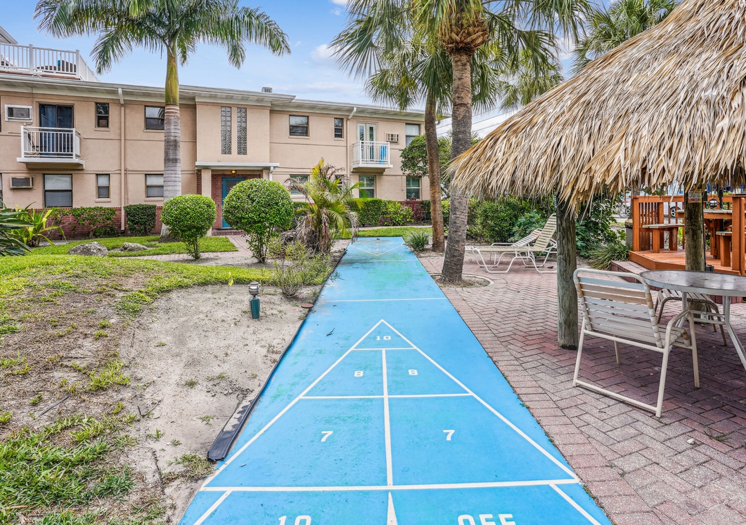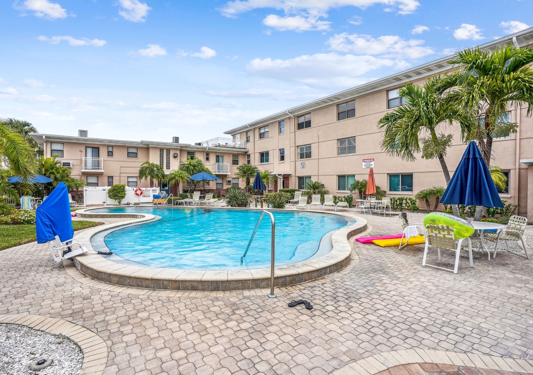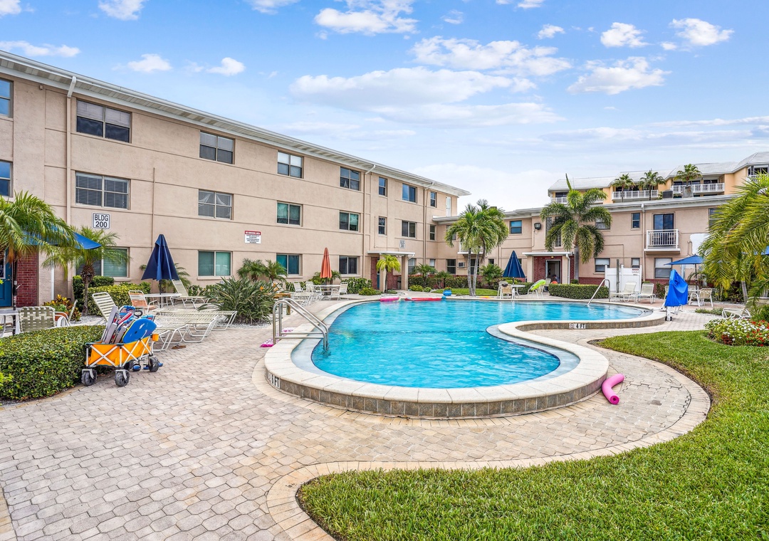 • All the property amenities- Outdoor heated pool, shuffleboard, tiki huts, a shared grilling area, bike racks and complementary in unit Wi-Fi.