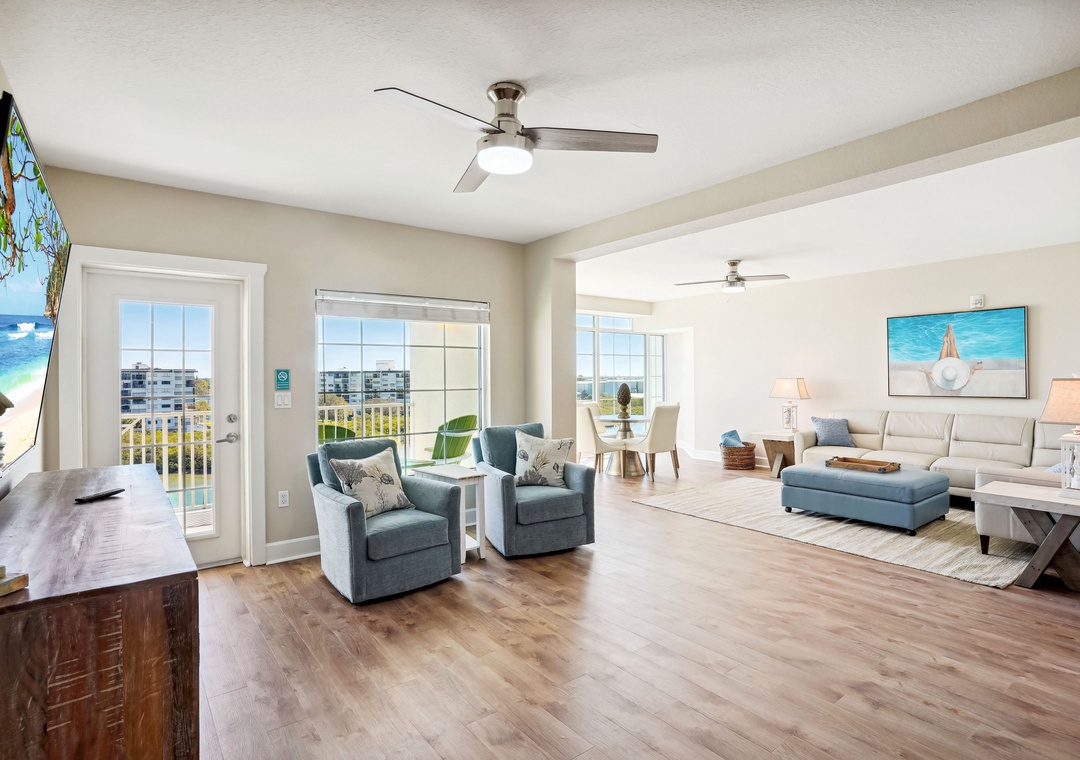 This condo was spacious and comfortable for our large family of 8, plus 2 extended family members. An open floor plan with a large kitchen, 2 dining areas and several conversation areas. We parked our 12 passenger van in the covered garage. Views of the boats at the inlet, the beach from the observation deck, and Harborside Waterpark from the front door. Easy access to the beach. Plus the added convenience of the pool and water park right on property. Our favorite day of the trip was our day on the boat with 'Captain Tom' (as our kids called him). We had a blast swimming, snorkeling, and watching dolpins play all around the boat. 2 of the adults went out for a second day of fishing- and came home with plenty of fresh fish for a family meal. I highly recommend this unit and boat trips for anyone. We are already planning our next visit!- Reviewed On: 8/24/2017