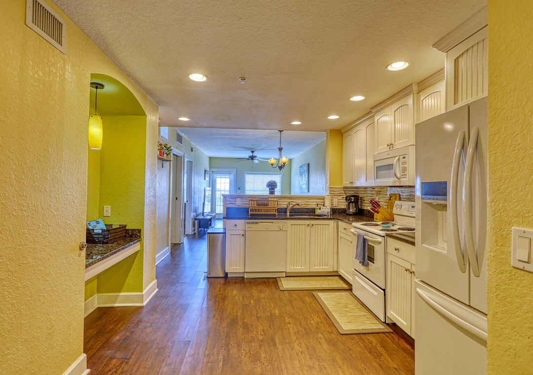 Splash Harbor Waterpark is right on the grounds and packed with excitement for all ages: waterslides, a lazy river, splash zones for little ones, pools, a sundeck, cabana rentals, mini golf, and a game room. Dining is effortless with several on-site options including Snack Shack, Bacardi Rum Shack, and Jimmy Guana’s Waterfront Restaurant. Park the car and forget about it—you’ll have everything you need right here. A fantastic spot for your next fun-filled vacation!