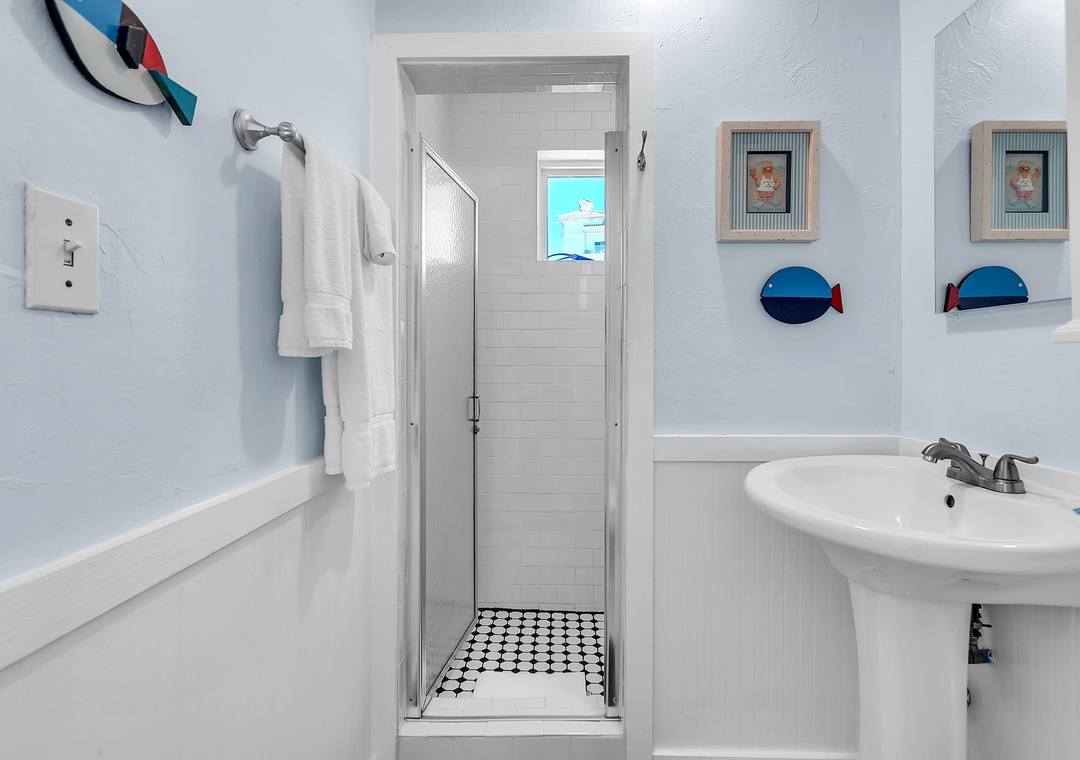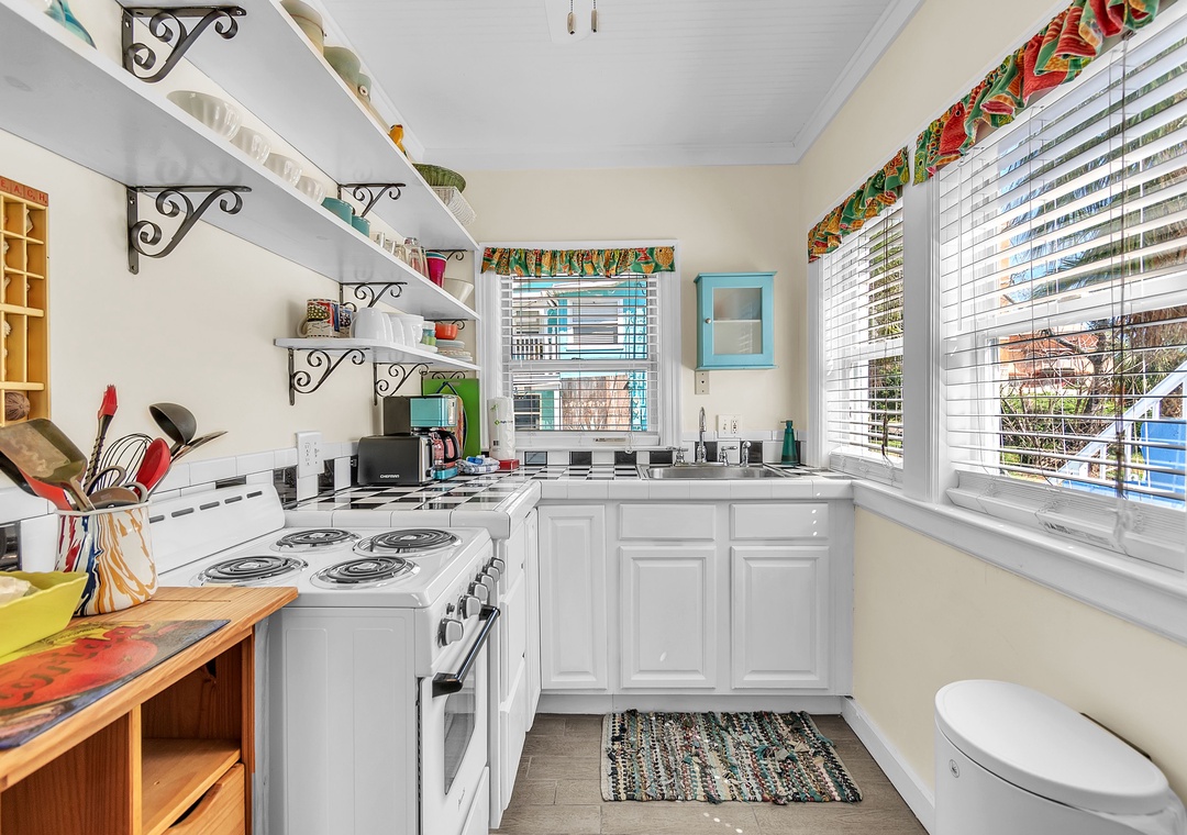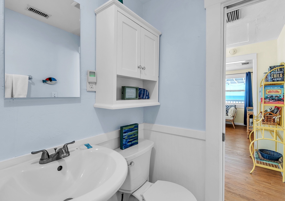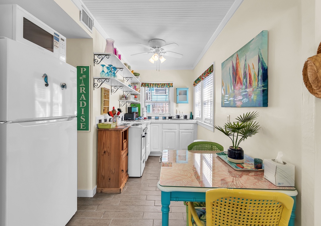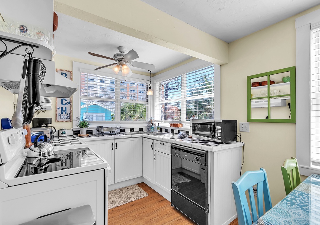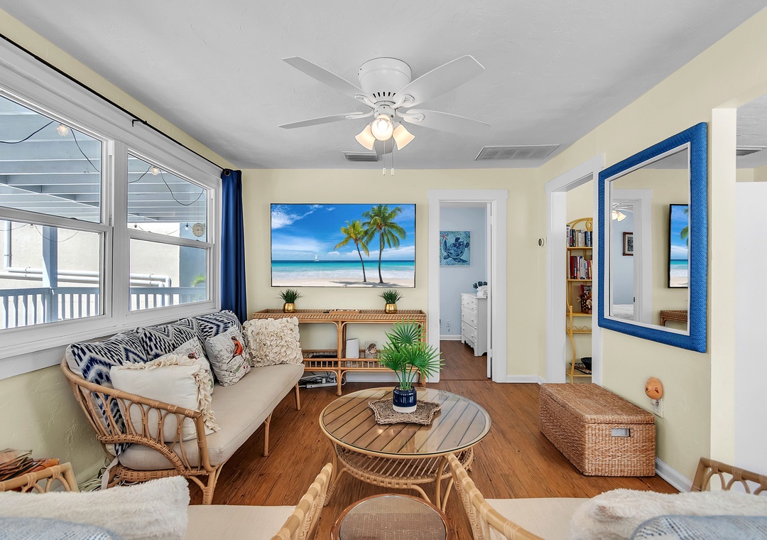 Upstairs, enjoy even more space with an open-concept living area, SmartTV, and balcony access with views of the Gulf of Mexico, a great spot to gather after your beach day and unwind while taking in the breathtaking Florida sunsets. You will find two queen bedrooms and one full bathroom here as well. A larger indoor dining table sets the scene for group meals or game nights, and the fully equipped kitchen has everything you need. Please note - stairs are required to access the upper level.