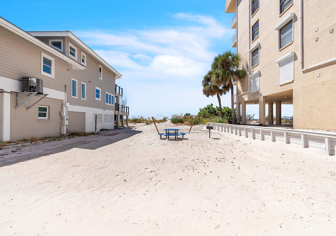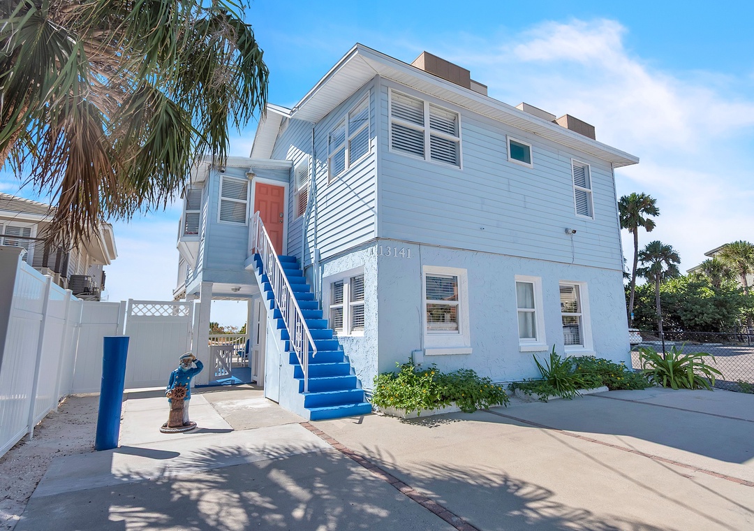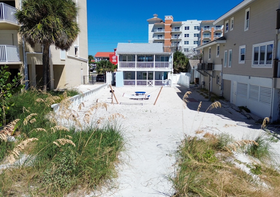 Welcome to John's Pass-Time Beach Cottages! This entire property is yours to enjoy, featuring two separate units—upper and lower levels—each with 2 bedrooms and 1 full bathroom. Step out your backdoor and follow the direct beach access path to the stunning coastline, perfect for all-day beach fun.
