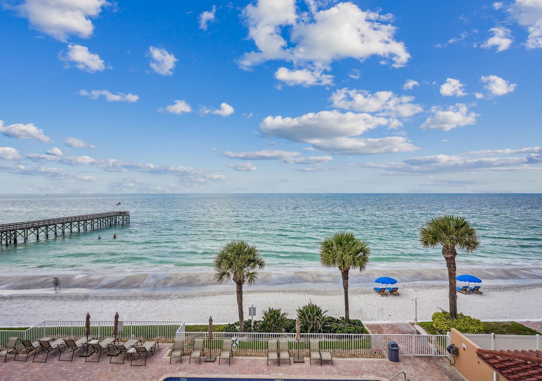 • All the amenities-TWO heated beachfront pools, a 250 feet private pier, a BBQ and cabana area, tiki huts and direct beach access!