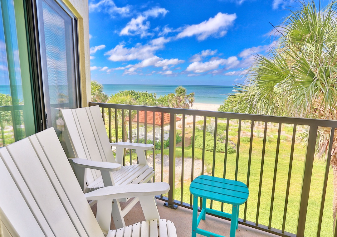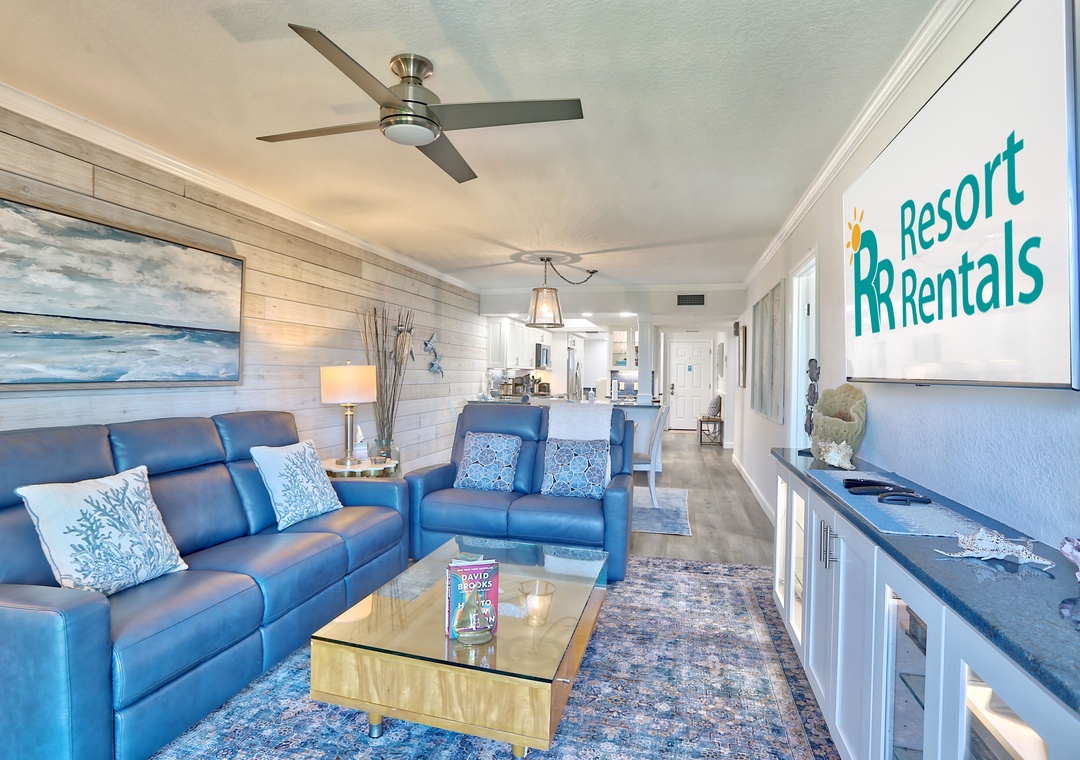 Welcome to Land's End 11-302, your next beachfront condo dream vacation come true! This beautifully updated 2-bedroom, 2-bathroom condo offers the perfect blend of comfort and coastal charm. Step into a bright, open space featuring coastal décor, stylish furnishings, and a comfy living room with a large-screen TV and access to the private balcony—perfect for soaking in those beach views and watching the beautiful Florida sunsets!