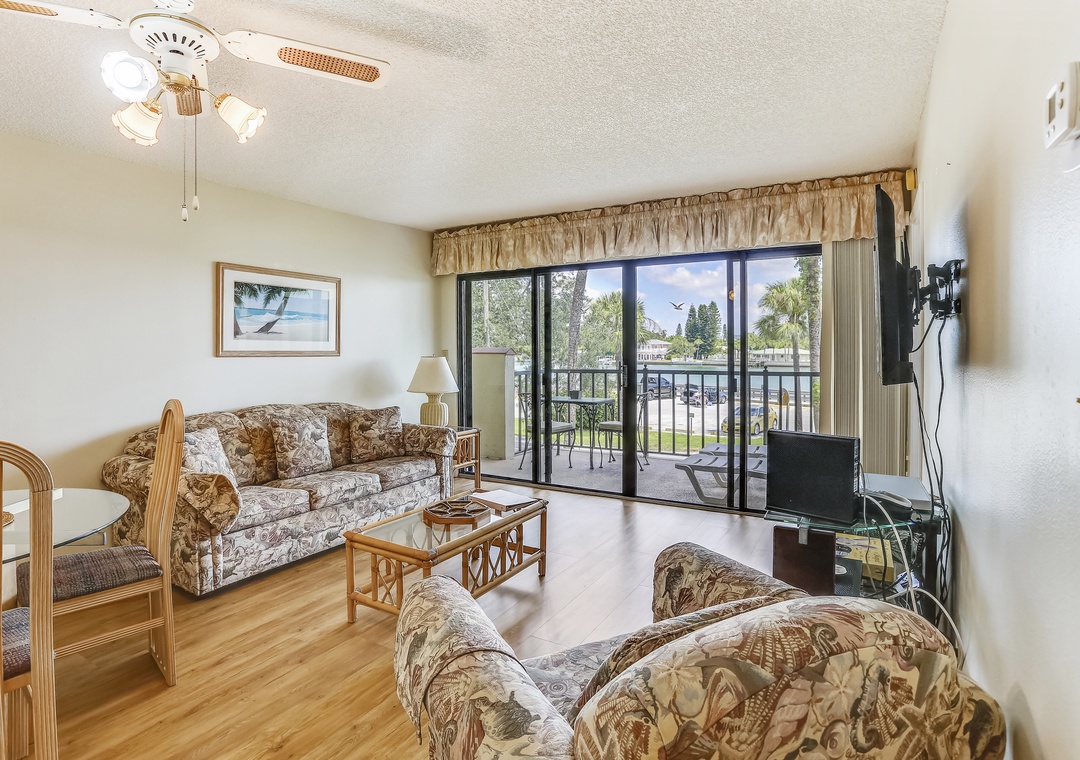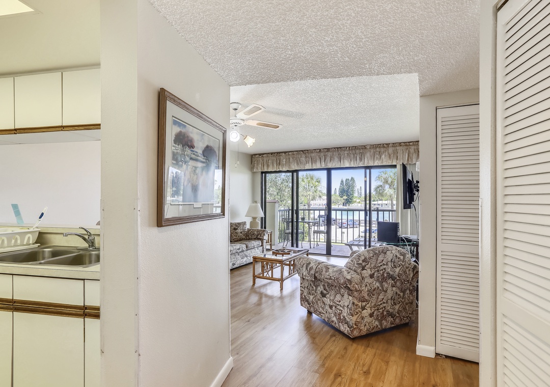 This comfortable 1 bedroom, 1 bathroom condo at Land's End is ready for your next beach getaway. Fully equipped condo with washer and dryer for your use, fully stocked kitchen, 2 TVs, new laminate flooring, free wireless internet service, private balcony off of the living room and bedroom area with lounge chairs and all of the Land's End amenities at your fingertips. This condo provides you with views of the Intracoastal Waterways where you are bound to see dolphins passing by and boaters heading out to the Gulf. Building #1 is just across from the pool and only a short walk to the beach access onsite.