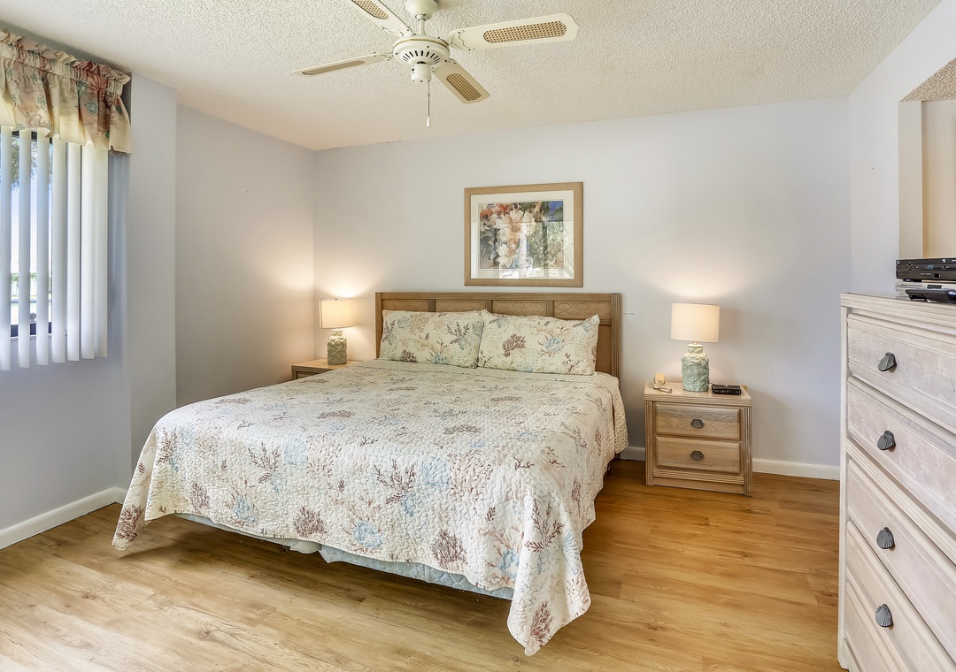 We loved staying here! The location is perfect and it's just a short walk to the ocean and a quick drive to restaurants, stores, etc. The unit is nestled in a quiet community and the on site staff are very friendly. The unit itself is a bit outdated, but we considered this a non-issue because we were out and about most of the day anyway. We loved that we had access to beach towels and umbrellas. The kitchen is well-stocked with most of what you need if you decide to cook. We will definitely stay here again!- Reviewed On: 6/30/2025