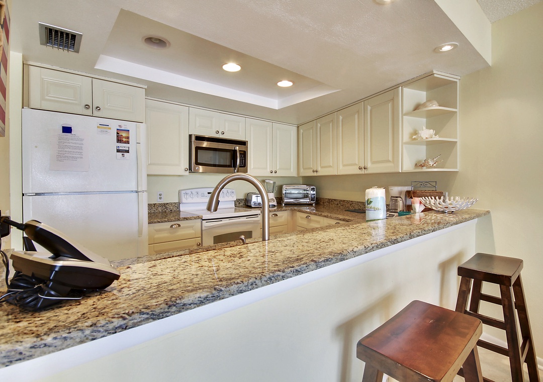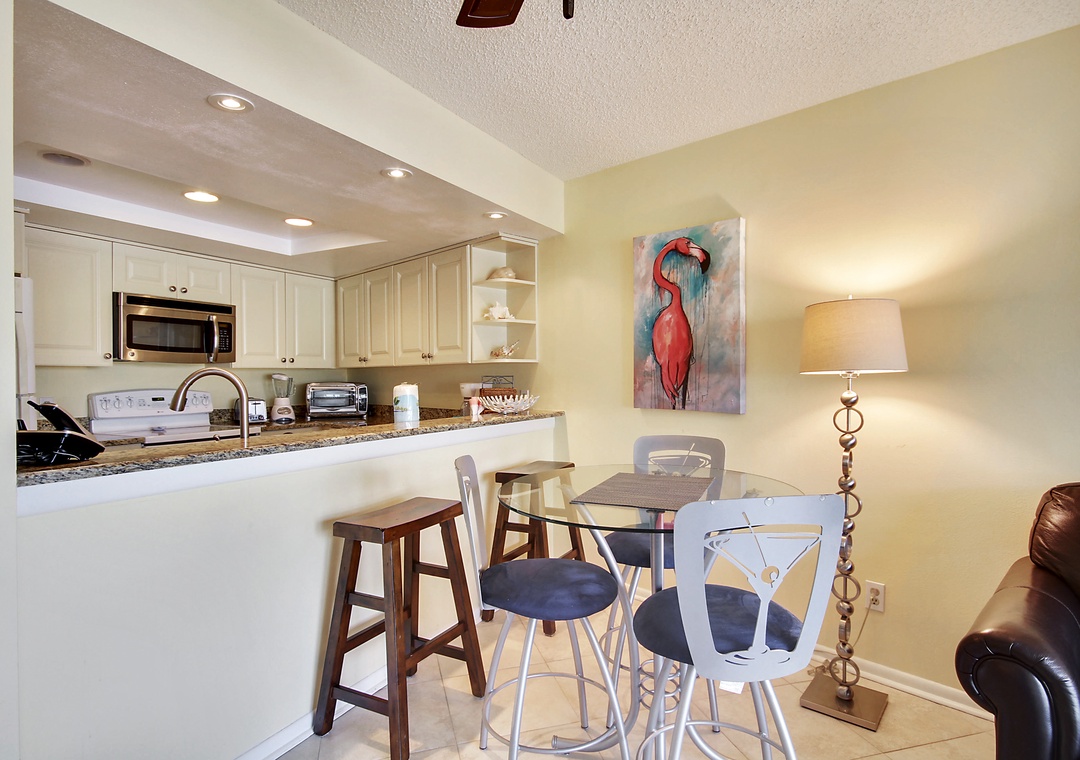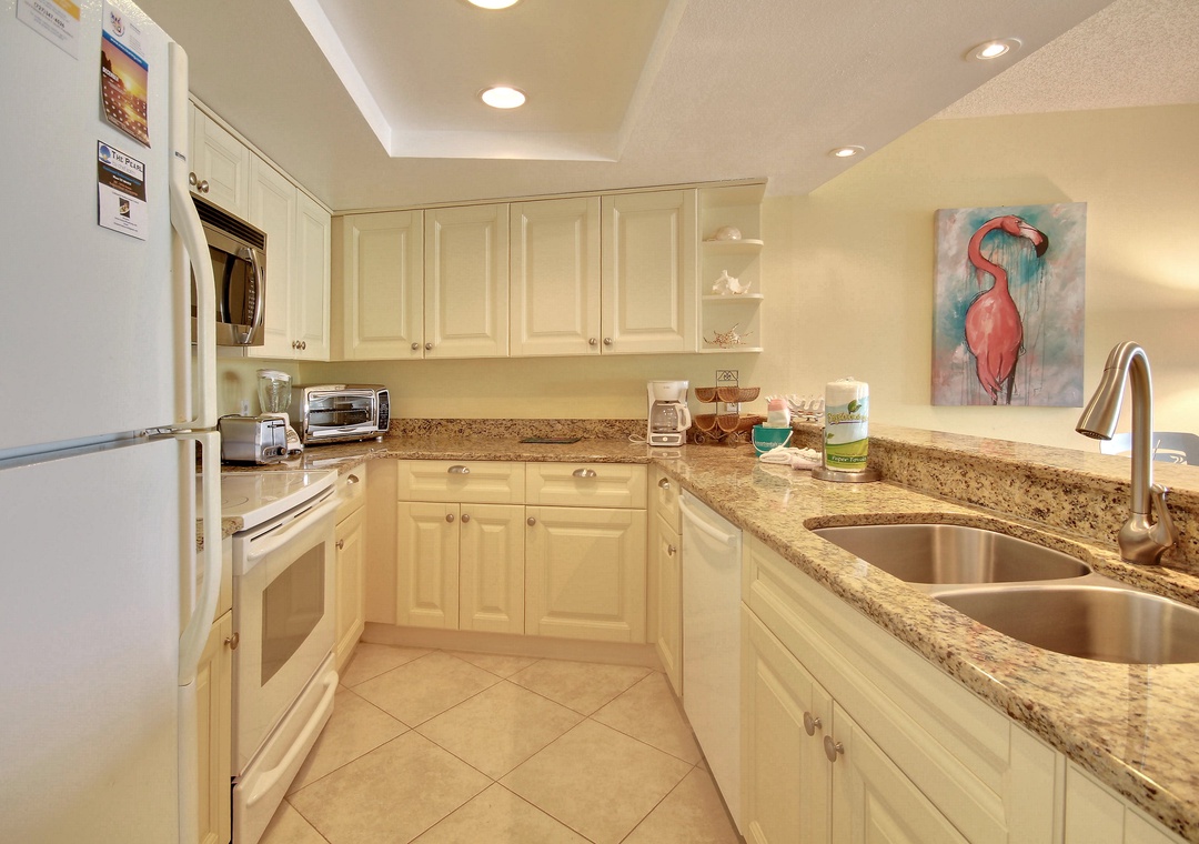 Newly renovated and very spacious, this 1 bedroom condo will delight you the minute you open the front door! Nothing was spared when designing the perfect oasis for your Florida vacation. The light and bright décor coupled with the cool tile floors throughout creates the perfect background for you to enjoy the best the beach has to offer. The state of the art, fully equipped kitchen will awaken your inner chef. Other amenities include a washer and dryer, flat screen TV’s and wireless internet service. This condo provides you with views of the Intracoastal Waterways where you are bound to see dolphins passing by and boaters heading out to the Gulf. Building #1 is just across from the pool and only a short walk to the beach access onsite.