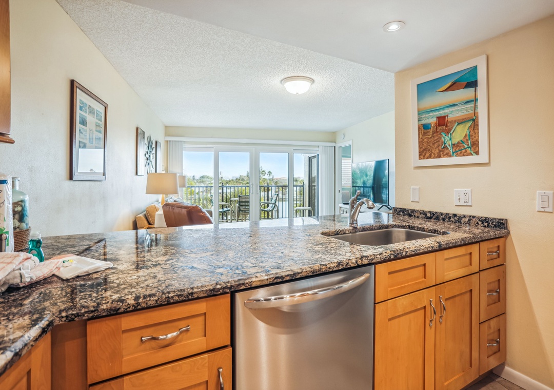 This comfortable 1-bedroom, 1-bathroom is located in the building right across the pool, hot tubs and the beach access. It is tastefully decorated throughout with a newly remodeled kitchen that is fully equipped, has Keurig coffee maker! The bathroom has been completely remodeled, there is a washer and dryer inside for your use, has a private balcony with seating and is sure to be a perfect fit for your vacation! This condo provides views of the Intracoastal Waterways where you are bound to see dolphins passing by and boaters heading out to the Gulf. Building #1 is just across from the pool and beach access onsite.