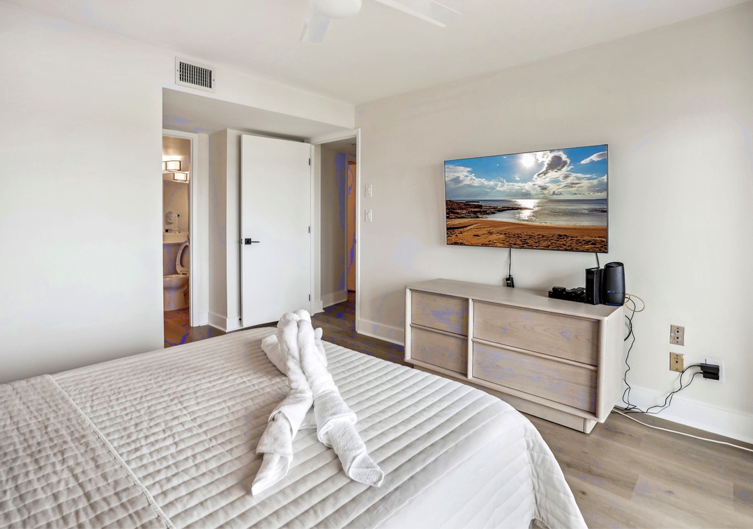 The property and condo were beautiful, it was like staying at an island resort. Check in was easy. Communication with the property management company was easy. It wasn't exactly on the beach, meaning we couldn't see it from the pool area, and had to walk a few minutes to get there. For us, that was a bit of a let down, but if that doesn't matter to you, then this is a great place. We were also told to remove our beach towels from the railing of our condo. Since that is a case, there are not enough places to hang bath towels and beach towels inside the room. There were 6 of us, so more hooks inside are needed. Otherwise, everything was new and clean. Definitely a beautiful place.- Reviewed On: 6/7/2024