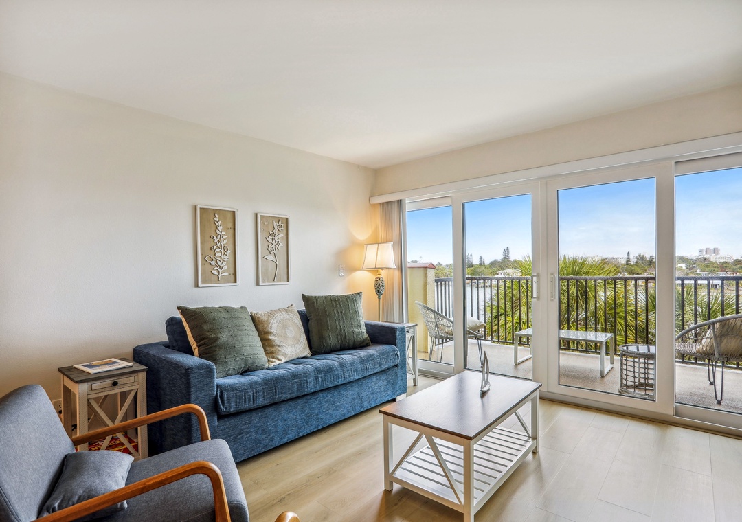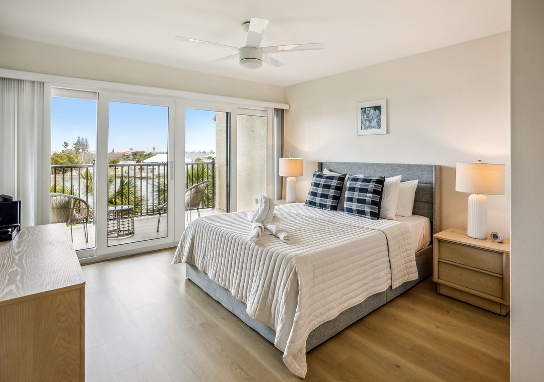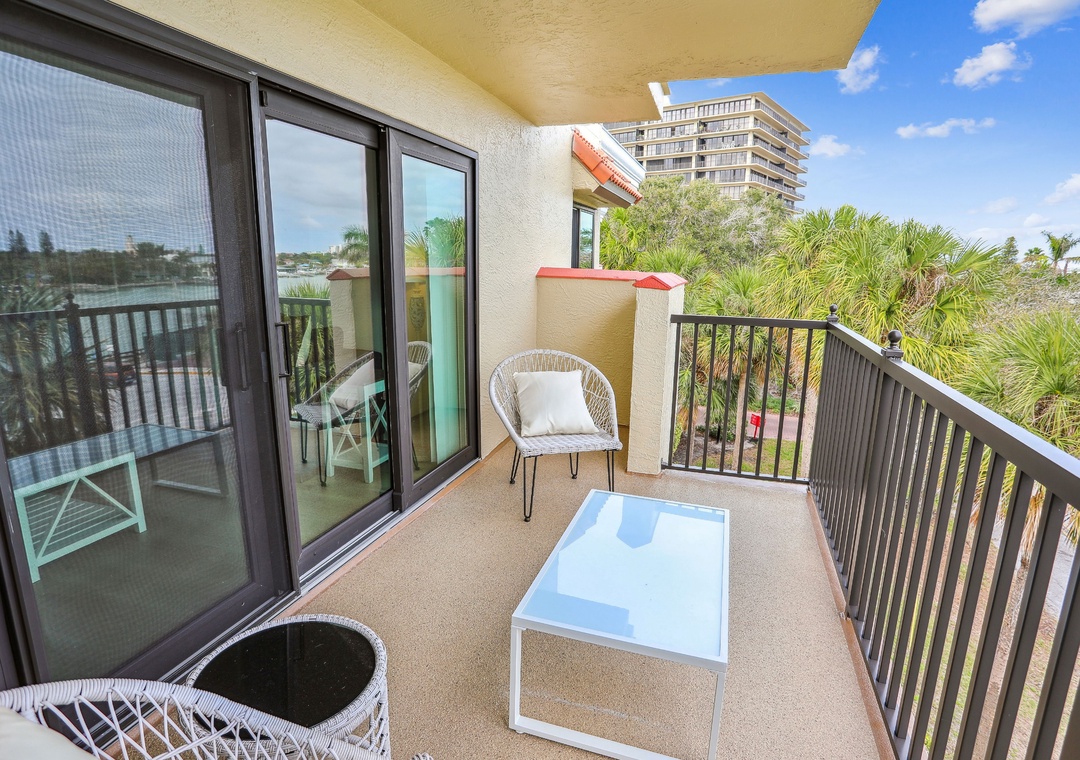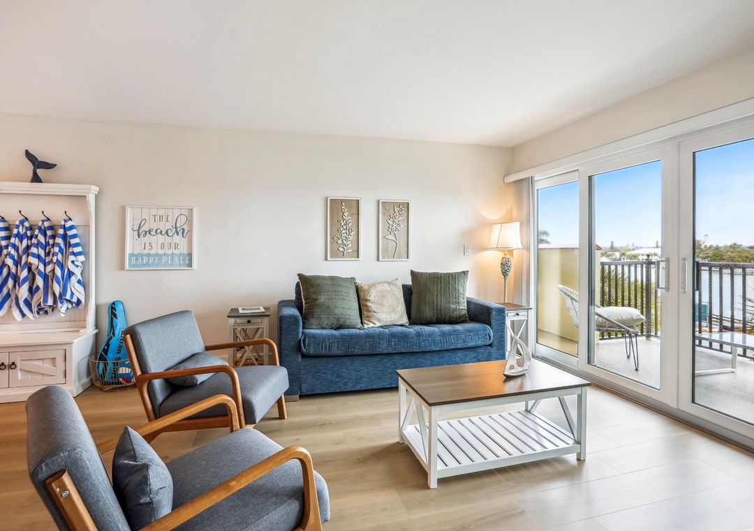 Welcome to your perfect getaway at Land's End in this newly updated top-floor condo with breathtaking bay views! This 2-bedroom, 2-bathroom retreat is nestled in a gated community, ensuring both privacy and security for an unforgettable vacation experience. The Master bedroom has a Queen-sized bed to sink into after the day, along with an attached bathroom that has dual sinks and a walk-in shower. One of the private balconies is off of the master bedroom giving you a private place to enjoy your morning cup of coffee. The guest bedroom is equipped with a bunk bed that has a twin on top and full on bottom. This bright, clean condo is nice and spacious providing dining seating and extra space at the kitchen counter for all to be comfortable and included! The living room has access to the other private balcony and provides awesome sunlight into the living space. There is also a sofa sleeper if needed. You will be perfectly at home in this lovely condo and will be ready to rebook your vacation here year after year! Building 1 is located across from the pool and near the gatehouse entrance.