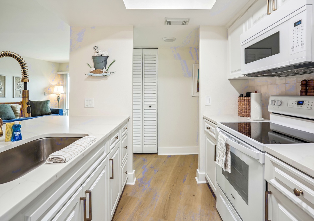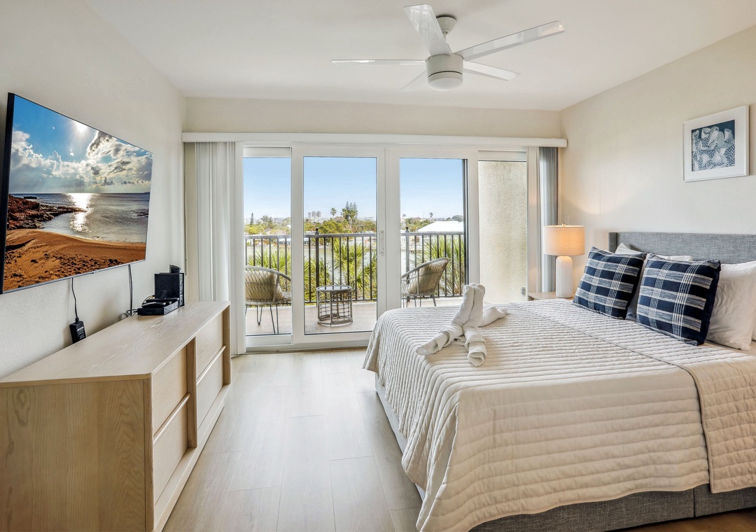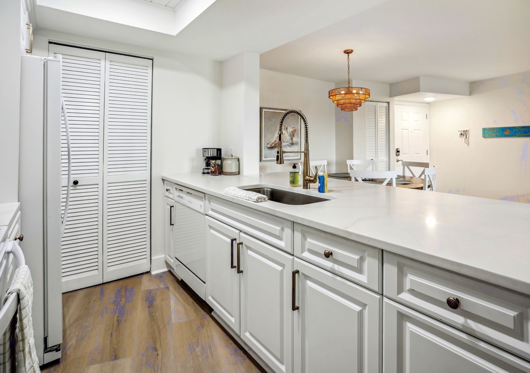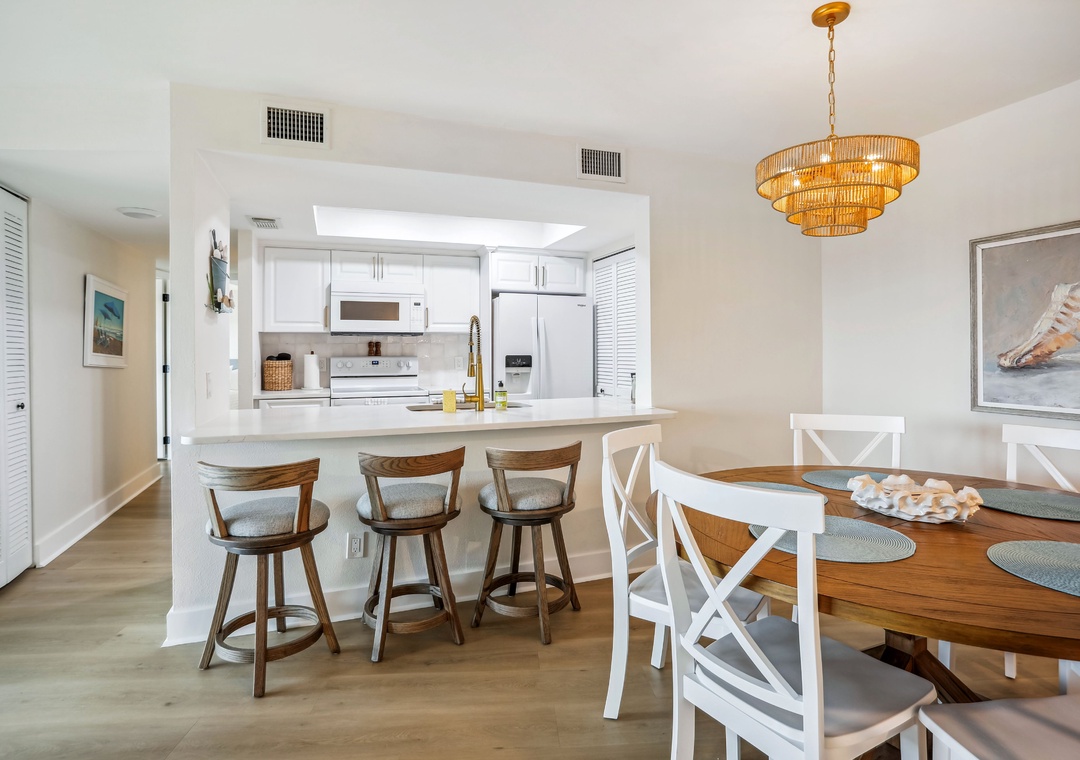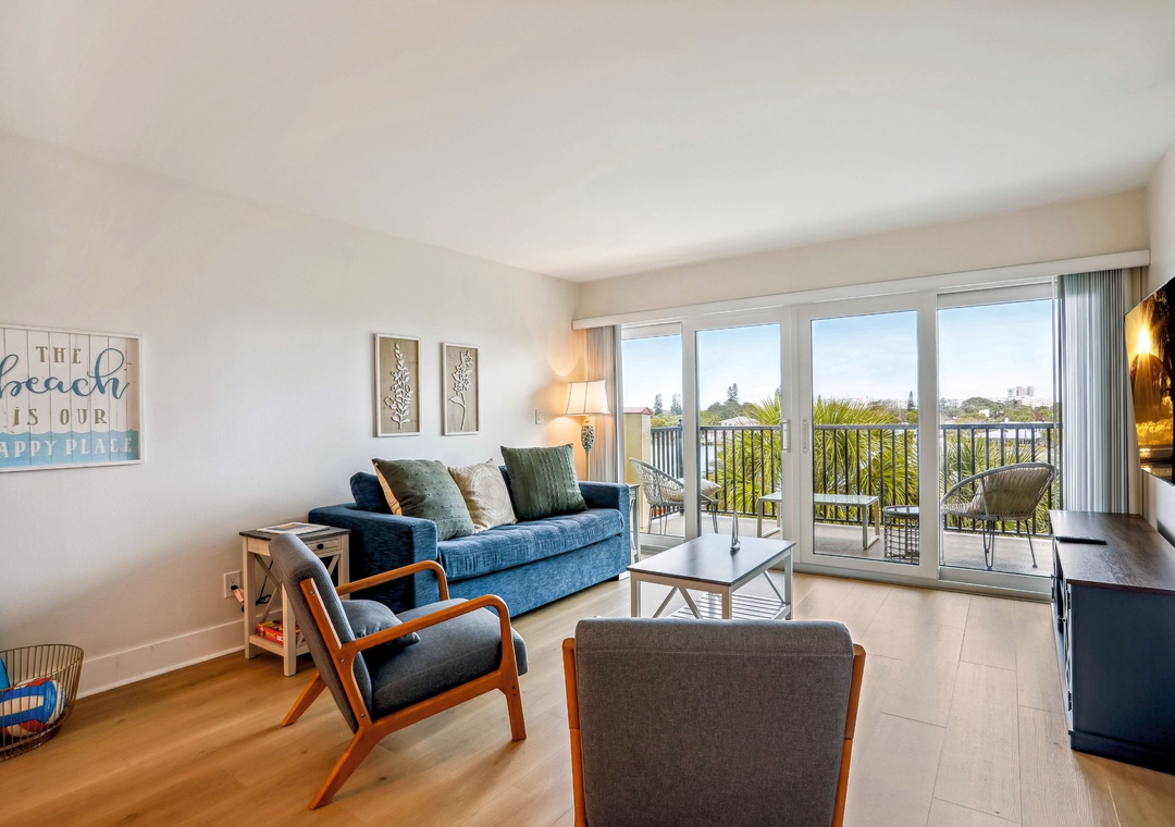 Welcome to your perfect getaway at Land's End in this newly updated top-floor condo with breathtaking bay views! This 2-bedroom, 2-bathroom retreat is nestled in a gated community, ensuring both privacy and security for an unforgettable vacation experience. The Master bedroom has a Queen-sized bed to sink into after the day, along with an attached bathroom that has dual sinks and a walk-in shower. One of the private balconies is off of the master bedroom giving you a private place to enjoy your morning cup of coffee. The guest bedroom is equipped with a bunk bed that has a twin on top and full on bottom. This bright, clean condo is nice and spacious providing dining seating and extra space at the kitchen counter for all to be comfortable and included! The living room has access to the other private balcony and provides awesome sunlight into the living space. There is also a sofa sleeper if needed. You will be perfectly at home in this lovely condo and will be ready to rebook your vacation here year after year! Building 1 is located across from the pool and near the gatehouse entrance.
