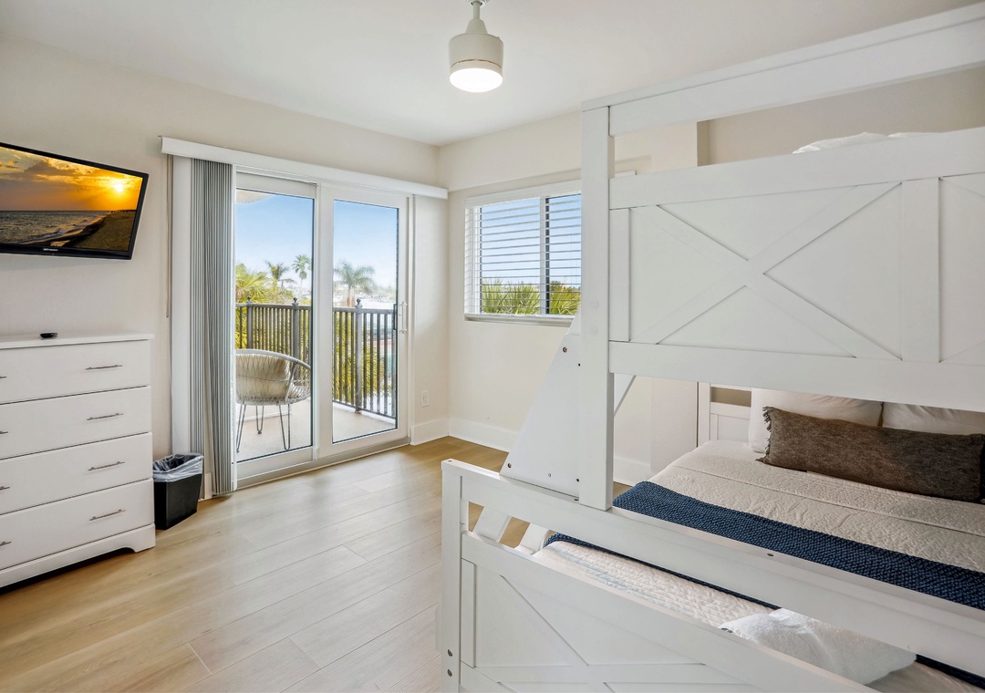 Bedroom 2- Bunk Bed with Twin on top, Full in middle and trundle pullout for another twin on bottom.