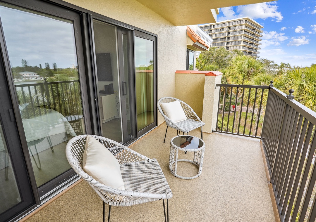 Thank you Tricia for reviewing your stay at Land's End building 1 unit 406. Building one is on the intercoastal side of Land's End. Yes, Land's End has strict rule concerning the hanging of towels as they are very careful to keep the grounds pristine. We apologize if this was an inconvenience. We hope you relaxed and had beach and pool time. We are hopeful you will join us again for another stay.Resort Rentals staff