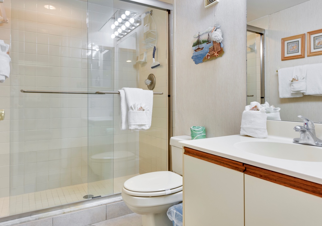 This condo is as shown in photos although there is wear in the bottom of tables and wallpaper. . We were comfortable and loved the balcony. For people who rent the condo the master bath toilet and shower are right next to each other. It is difficult and tight squeeze. I am not sure how a large person would manage. The hall bath is more comfortable and we used it when our second couple left. There is sometimes loud music from the restaurant across the waterway. It could go late on weekends. We enjoyed the music as we sat on the balcony. There is a public walkway along the water. You are on the second floor so it rarely bothered us.- Reviewed On: 4/30/2021