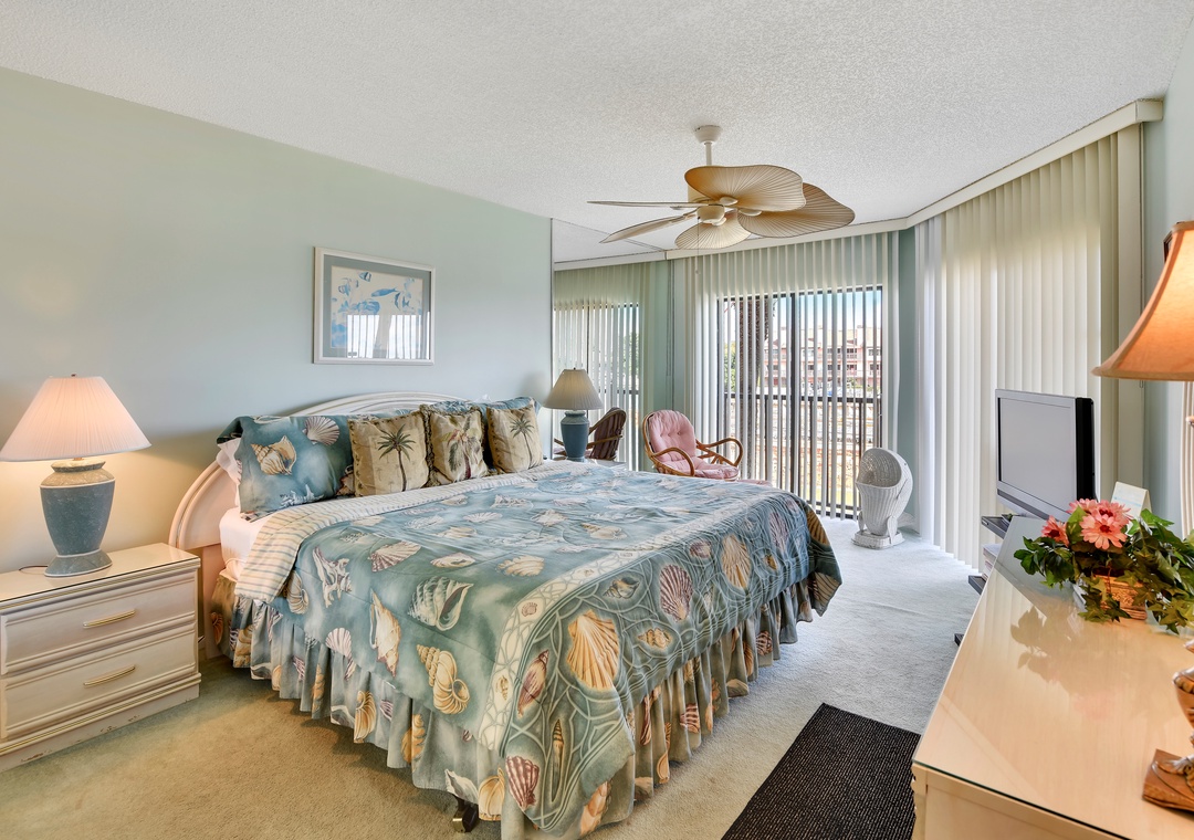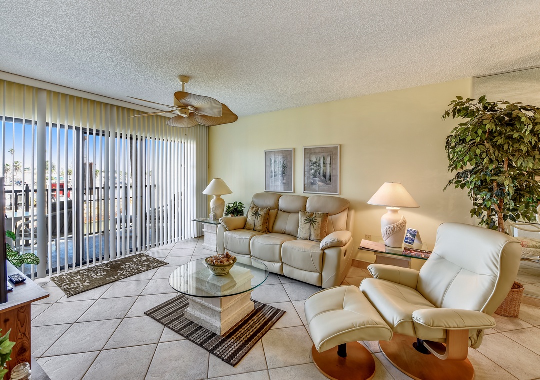This comfortable and cozy 2 bedroom condo carries a tasteful décor and is a great spot for a beach vacation! The comfortable living room furniture including a recliner chair plus a large flat screen TV are a great spot to relax after a day of beach, sun and fun. Well equipped kitchen that is ready for you to create your meals in, awesome views of the Intracoastal Waterway, private balcony with seating, free internet service and more. Just kick your feet up and watch the action go by on your balcony! Building #3 is next to the grilling area on grounds making your cookouts nice and convenient, it is also near the pool and a very easy walk to the beach access onsite!!