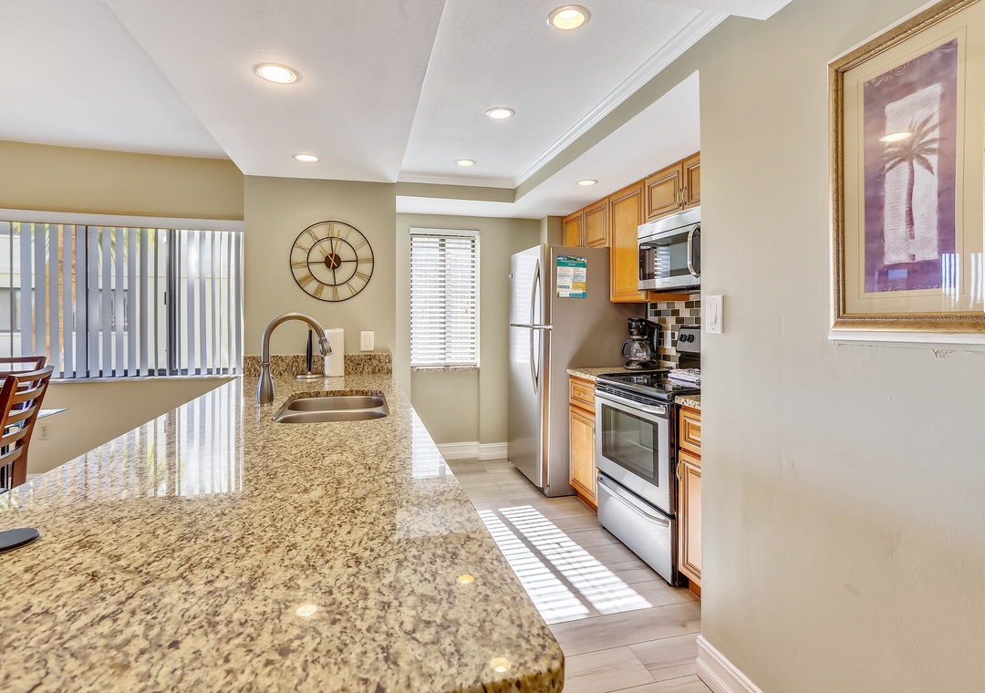 Thank you for your feedback, Laurie! We appreciate your kind words and are glad you enjoyed the clean condo, wonderful pool, and beach access. We apologize for the kitchen items and have restocked with new ones to ensure a safe and comfortable stay for future guests. We hope you consider staying with us again in the future!Resort Rentals staff