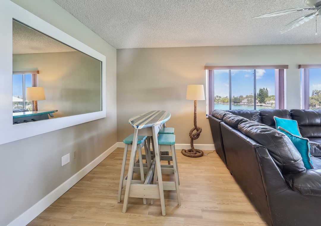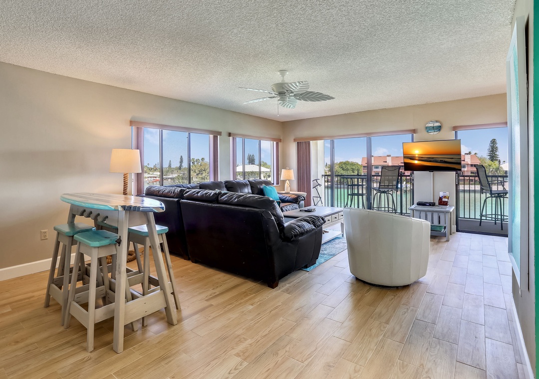 * The double-size balcony offers plenty of space to rest and relax while enjoying the water views with passing boats or sea life such as dolphins or even the occasional manatee.