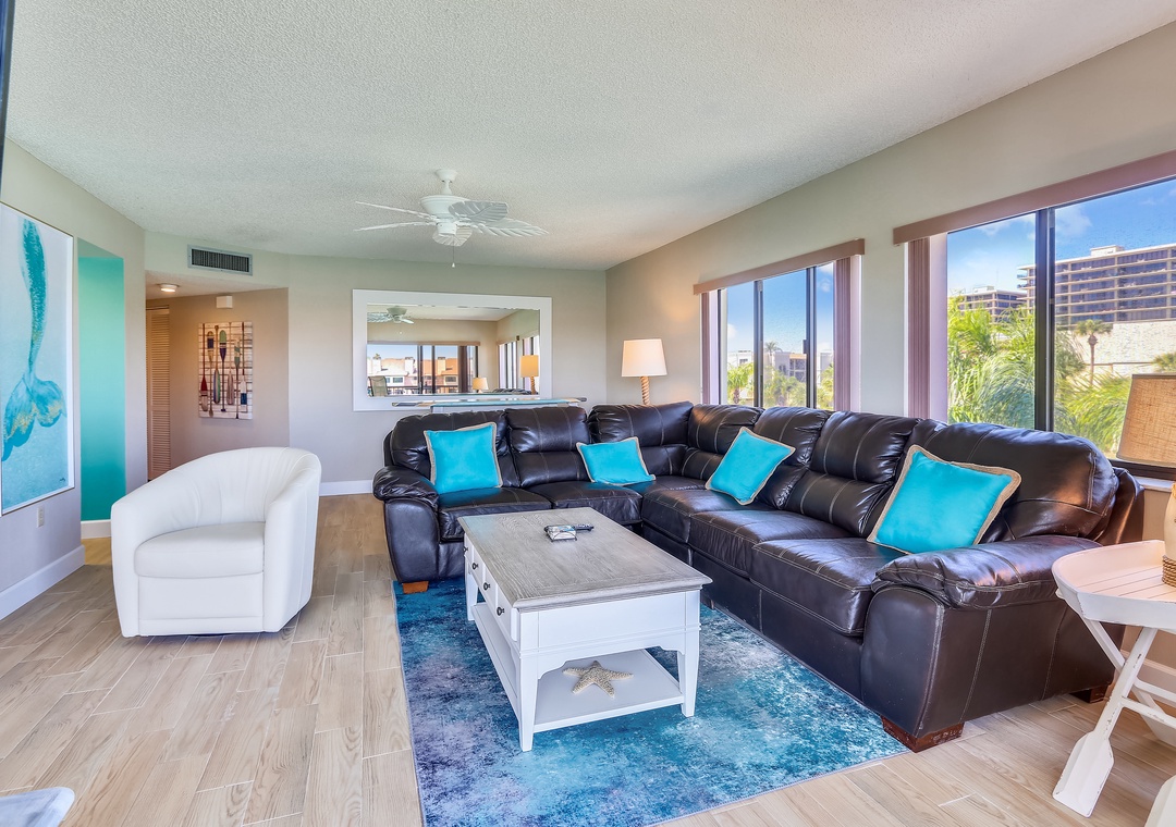 Rating Details: The property manager was very helpful. The vacation rental was spotless. I was very happy with the location. I was very satisfied with the condition of the vacation rental. Overall, I recommend this vacation rental. Reviewer Comments: We loved this unit, we have stayed at Land's End several times and this unit is a favorite. The coastal decor is so well done, the unit is well equipped and very clean. We enjoyed sitting on the big deck watching the watercraft and loved watching the dogs play in the edge of the waters with their owners. This corner unit does provide that extra room that is truly an advantage. We did have an issue with the TV's initially, however contacted rental resorts and they sent out a repairman to resolve the problem within a day of our request. We had great food at Sea Dogs, Caddy's, Crabby's, Foxy's, Captain Bills, Willy's. We also enjoyed going to the pier downtown St. Pete and having drinks and appetizers at Doc Fords. We love Treasure Island/St. Pete Beach and have been vacationing in this area for years. We highly recommend Lands End and would stay in Unit 301 again in the future. My only suggestions would be this unit could use a couple of more beach towels, and the ceiling fan in the master bedroom needs to be replaced. We will be back again in 2023!- Reviewed On: 7/9/2022