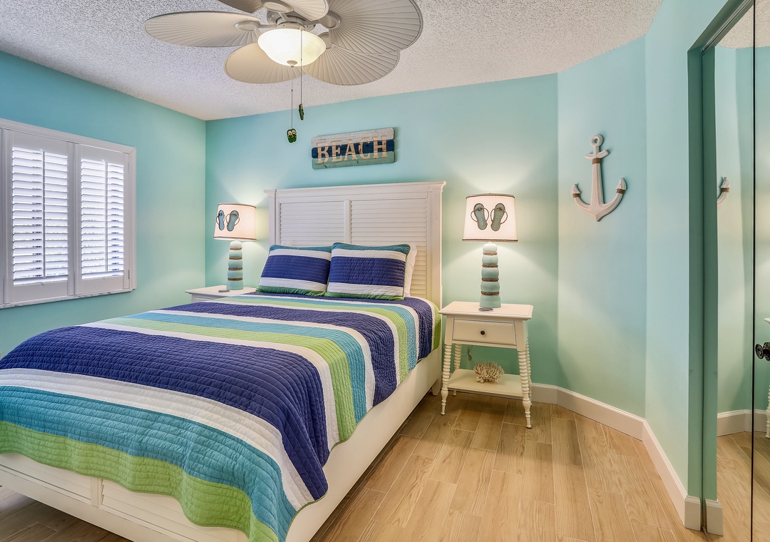 That is awesome Teresa! welcome back! pleased you enjoyed your stay at Land's End building 3 unit 301. The condo is a "Premier" unit (recently updated). Glad you liked the coastal décor, and it is well equipped and very clean. Great you like the corner unit with the advantage of extra room and larger balcony. We are glad you had the television problem fixed within a day from Resort Rentals. Sounds like you visited many fun restaurants in the area, and how fun to check out St. Petersburg new Pier. We do not require our owners to provide beach towels, so that is great they had some. We can certainly check the ceiling fan in the primary bedroom. We look forward to your next visit.Resort Rentals staff