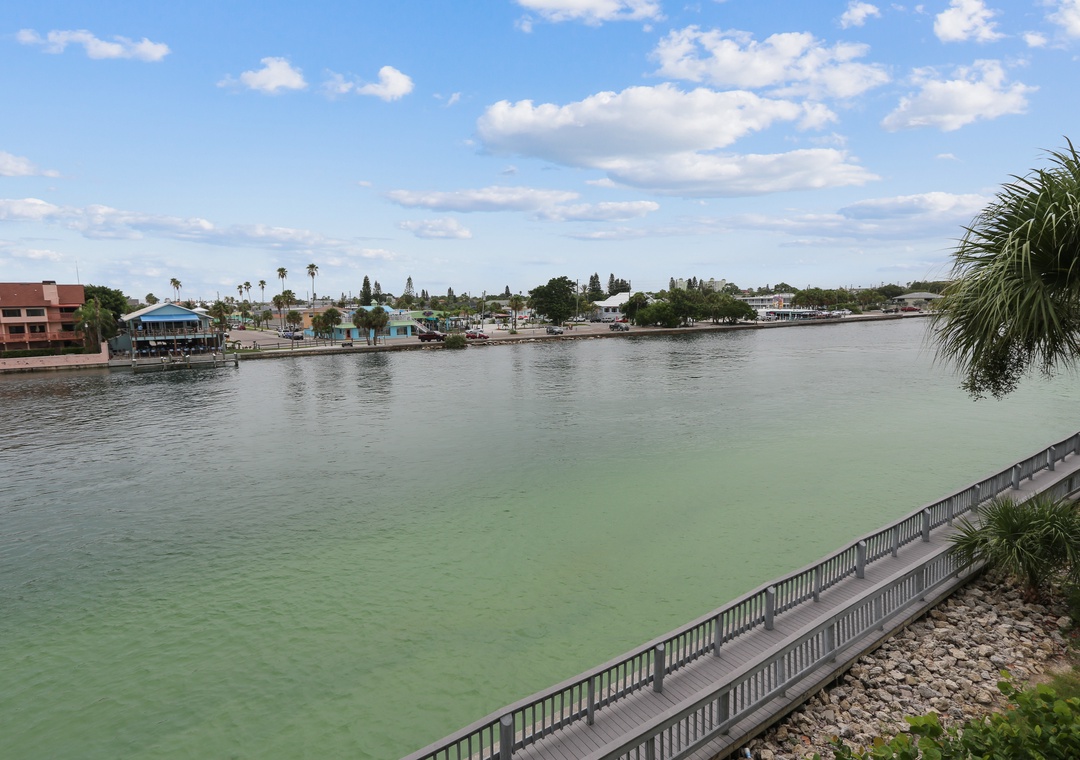 Land's End is a gated waterfront community in Treasure Island, nestled at the end of a peninsula and surrounded by water on three sides. To the east, it borders a channel of the Intracoastal Waterway, while the Gulf of Mexico lies to the west, and Blind Pass to the south. Residents can enjoy stunning views of boats passing through the channel, with dolphins and manatees often spotted nearby. The community features 10 buildings and a range of amenities, including a large, heated pool, hot tub, tennis and pickleball courts, sand volleyball, shuffleboard, gazebos, and a BBQ grilling area. Direct beach access onsite for all offers a perfect blend of relaxation and recreation for anyone.