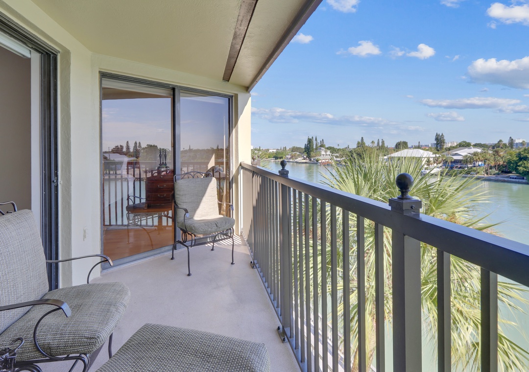 Land's End is a gated waterfront community in Treasure Island, nestled at the end of a peninsula and surrounded by water on three sides. To the east, it borders a channel of the Intracoastal Waterway, while the Gulf of Mexico lies to the west, and Blind Pass to the south. Residents can enjoy stunning views of boats passing through the channel, with dolphins and manatees often spotted nearby. The community features 10 buildings and a range of amenities, including a large, heated pool, hot tub, tennis and pickleball courts, sand volleyball, shuffleboard, gazebos, and a BBQ grilling area. Direct beach access onsite for all offers a perfect blend of relaxation and recreation for anyone.