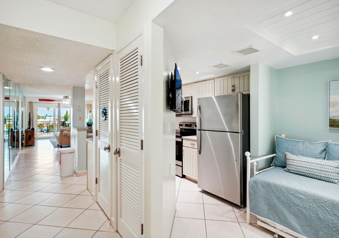 We enjoy this unit (this was our second stay in it) but closet space is a bigger issue than it was last year. The master bedroom closet is small and has a storage container with a mattress pad in it for the owners use only, two blankets stacked on top of that and the shelf is stuffed with lots of bedding items. This left the closet unusable. The second bedroom closet has the top shelf also stuffed full of bedding items. It is time for some of these items to be cleared out! Everything else was great. We love the bay view and were created by several dolphins when we arrived. If the closets get cleared out a bit, we would love to rent this unit again.- Reviewed On: 3/10/2025