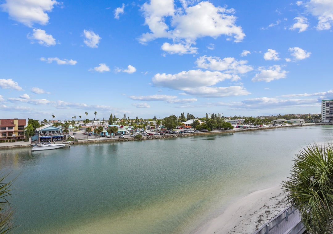 Land's End is a gated waterfront community in Treasure Island, nestled at the end of a peninsula and surrounded by water on three sides. To the east, it borders a channel of the Intracoastal Waterway, while the Gulf of Mexico lies to the west, and Blind Pass to the south. Residents can enjoy stunning views of boats passing through the channel, with dolphins and manatees often spotted nearby. The community features 10 buildings and a range of amenities, including a large, heated pool, hot tub, tennis and pickleball courts, sand volleyball, shuffleboard, gazebos, and a BBQ grilling area. Direct beach access onsite for all offers a perfect blend of relaxation and recreation for anyone.