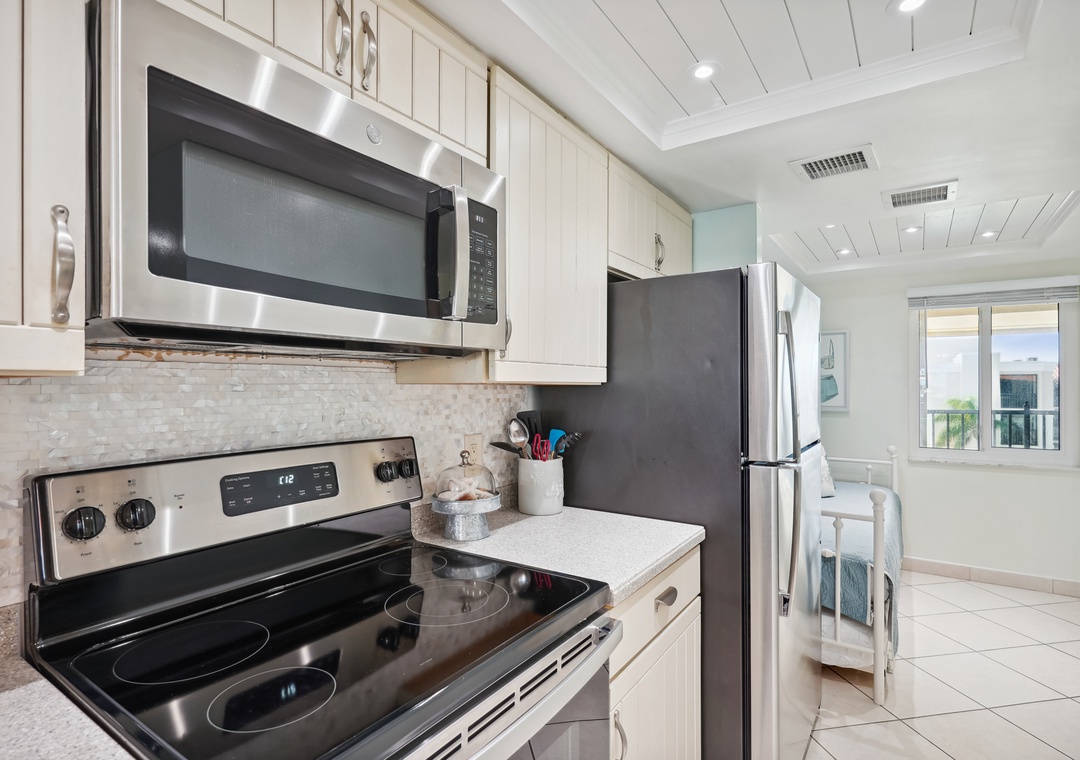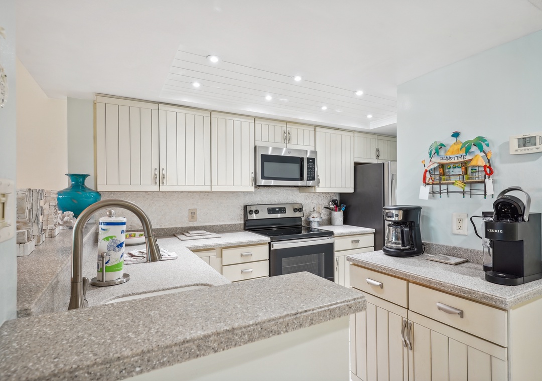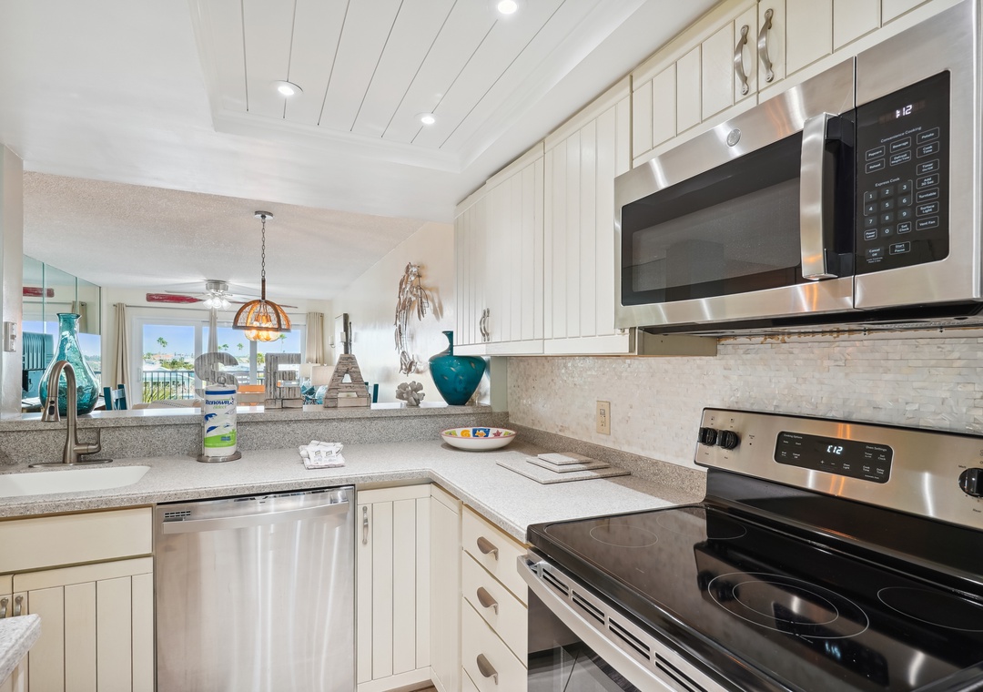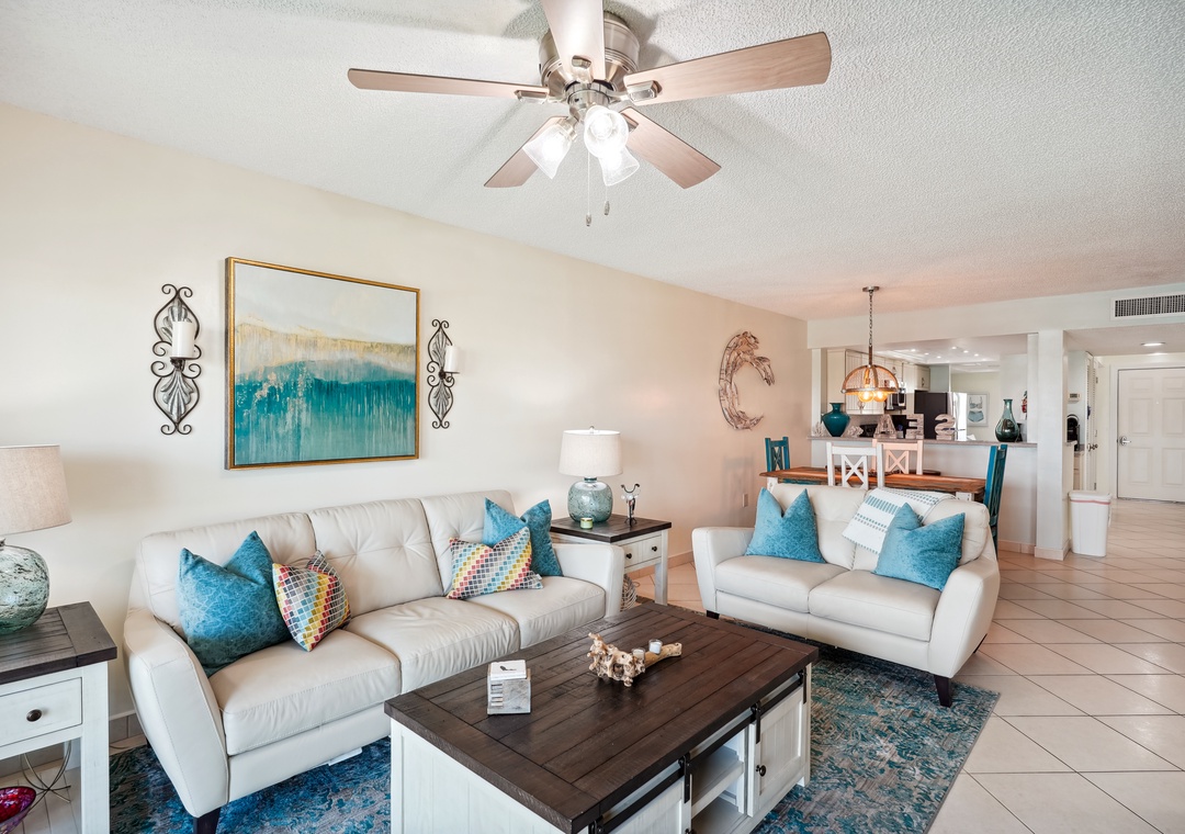 Want an open concept vacation stay with spectacular indoor and outdoor views? Then this is the place! This stunning two-bedroom unit gives coastal vibes with no detail overlooked and is the perfect beach getaway. It offers panoramic views from the private balcony, direct beach access, and a convenient location near all the Treasure Island attractions. Feel free to make use of the property’s fabulous amenities during your stay! Come spend some time in this piece of paradise. The fully equipped kitchen has beautiful granite countertops and stainless-steel appliances. Enjoy a home cooked meal gathered around the dining table which has seating for up to four people with more seating at the breakfast bar. The comfortable living area offers a large flat screen television. The open floor plan allows your friends and family to mingle and watch your favorite shows. Step outside and feel a fresh salty breeze on the balcony which also has seating, placed with pure relaxation in mind.