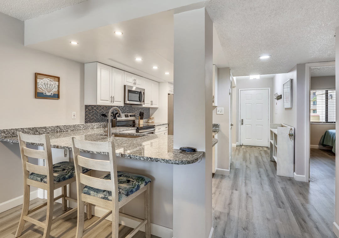 Awesome Elena! pleased you enjoyed your stay at Land's End building 4, unit 202. The condo you chose is a premier unit (recently renovated), and glad the updates were to your liking and accommodated your needs. We hope you relaxed and had pool/beach time. We look forward to your next stay.Resort Rentals staff