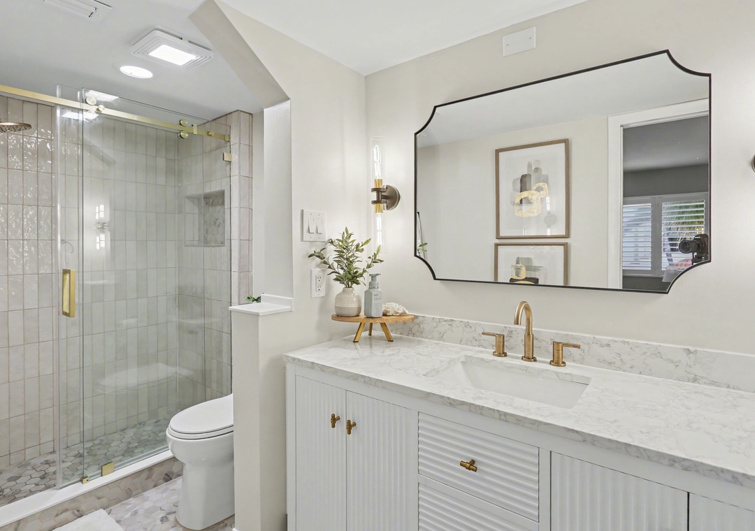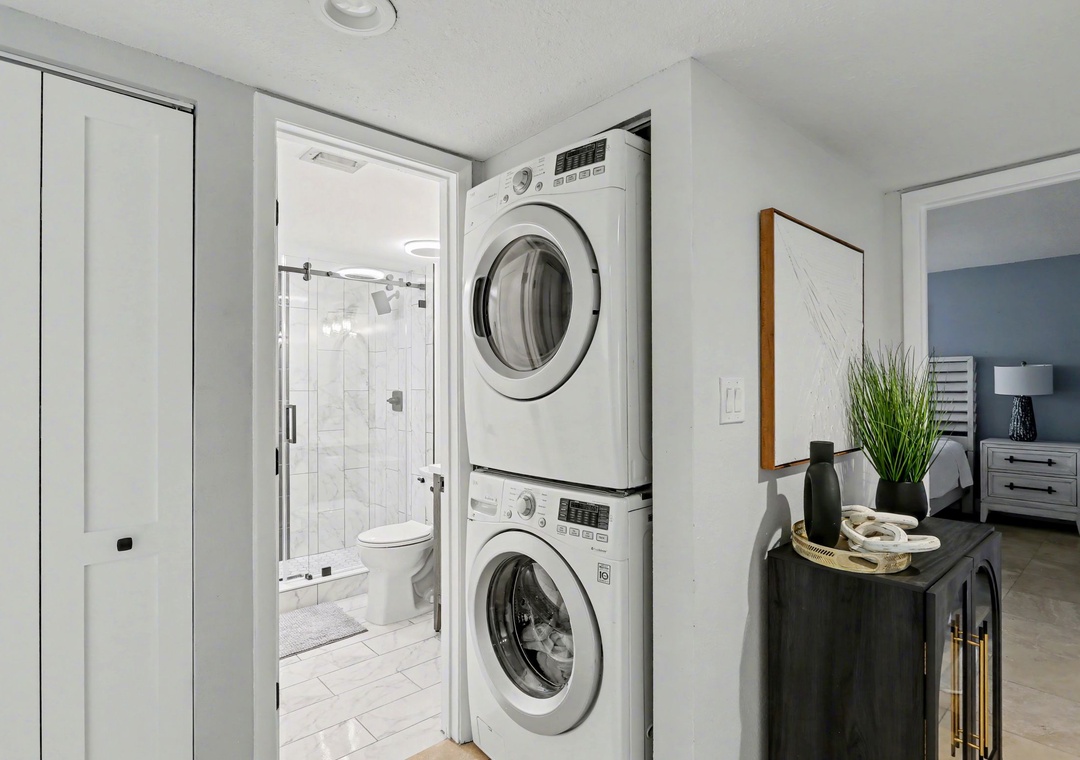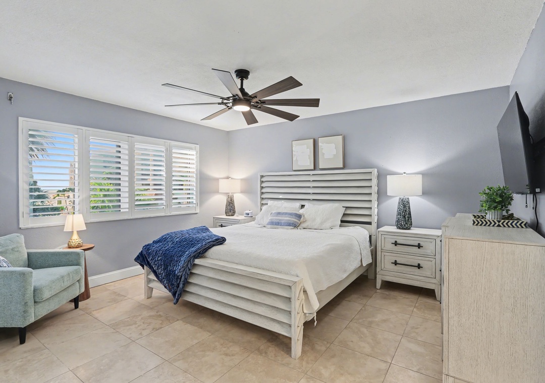 The master bedroom features a king bed, a TV, and beautifully updated en-suite bathroom for added privacy. The guest bedroom includes a queen bed and a desk area, ideal for any work needs, while the updated guest bathroom is an oasis for you and your guest. For added convenience, a washer and dryer are located within the unit. Enjoy all the amenities of the complex, take a leisurely stroll along the secluded beach, or just relax on the private balcony and savor the water views.